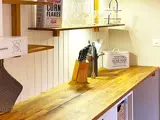 In einem schönen Ferienhausgebiet wohnen Sie hier in einem sehr gemütlichen Ferienhaus mit gut ausgewählten Einrichtungsdetails, die ein angenehmes und harmonisches Wohngefühl schaffen. Die Häuschen hat eine kleine Küche mit guter Ausstattung und kleiner Essecke. Der größere Essbereich befindet sich in einem separaten Raum mit Türen nach draußen zum schönen Garten. Gemütliches Wohnzimmer mit Sitzecke im Haus. Zudem schön renoviertes Badezimmer auf der unteren Ebene des Hauses. Im Obergeschoss befinden sich eine Toilette und zwei Schlafzimmer, von denen eines mit einem Doppelbett und das andere mit zwei Einzelbetten ausgestattet ist.