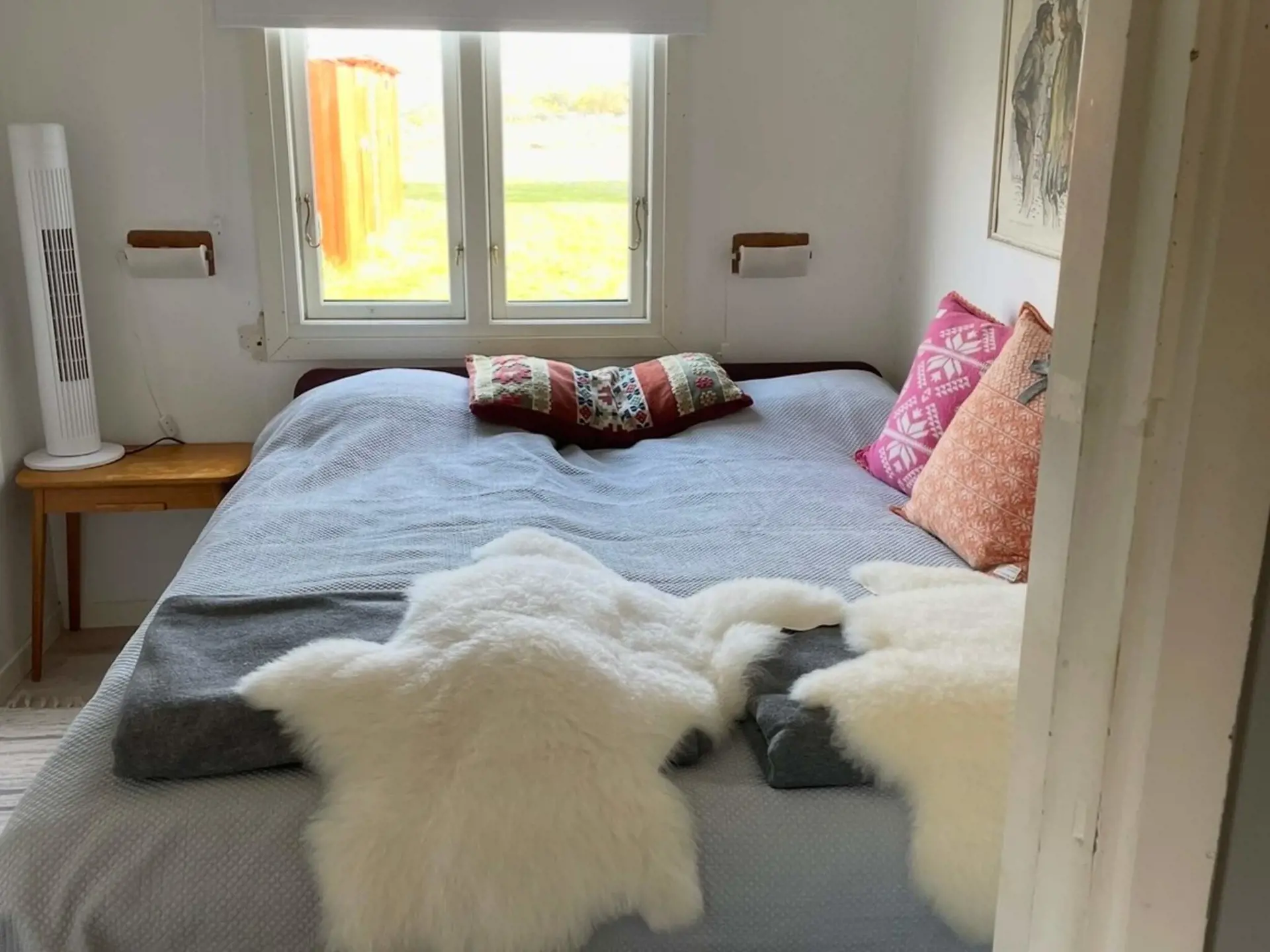 The house has three bedrooms: one with a comfortable double bed, the other two with a 120cm bed each, which makes the house well suited for both families and smaller groups.