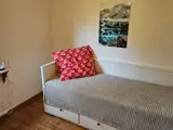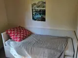 Das Haus wurde in den letzten Jahren renoviert und erweitert und bietet jetzt einen offenen Grundriss. Die Küchenecke ist zum Kochen ausgestattet, ein Kühlschrank mit Gefrierfach befindet sich im Wohnbereich. Das große Wohnzimmer bietet einen Essbereich mit offenem Kamin sowie eine gemütliche Sitzecke mit einem Gusseisenofen für kühlere Abende. Es gibt vier Schlafzimmer im Haus. Eines ist mit einem 160?cm breiten Doppelbett ausgestattet, zwei weitere Zimmer haben ausziehbare Betten, die ebenfalls 160?cm breit werden, und im vierten Zimmer befindet sich ein normales Einzelbett. Das Badezimmer ist frisch renoviert, verfügt über Dusche und WC, und außerdem befindet sich hier auch die hauseigene Sauna. Im Außenbereich gibt es großzügige Rasenflächen sowie zwei verschiedene Terrassen, zwischen denen man je nach Wetterlage wählen kann.