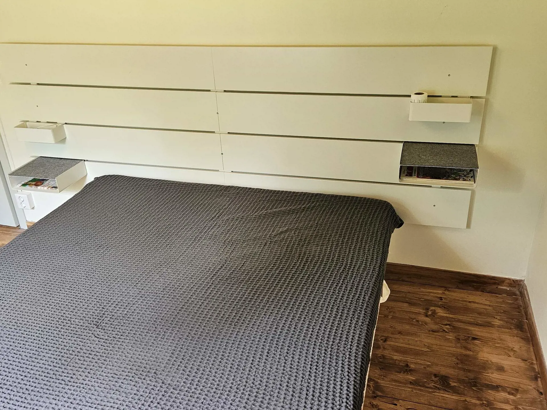 Wenn Sie mit einem Elektroauto anreisen, gibt es eine Lademöglichkeit im Carport am Grundstückseingang. Das Haus ist an einen gemeinschaftlich genutzten Brunnen angeschlossen, dessen Wasser einen hohen Eisengehalt hat – was einen leichten Geruch verursachen kann. Das Wasser wurde jedoch getestet und ist zum Trinken vollkommen unbedenklich.