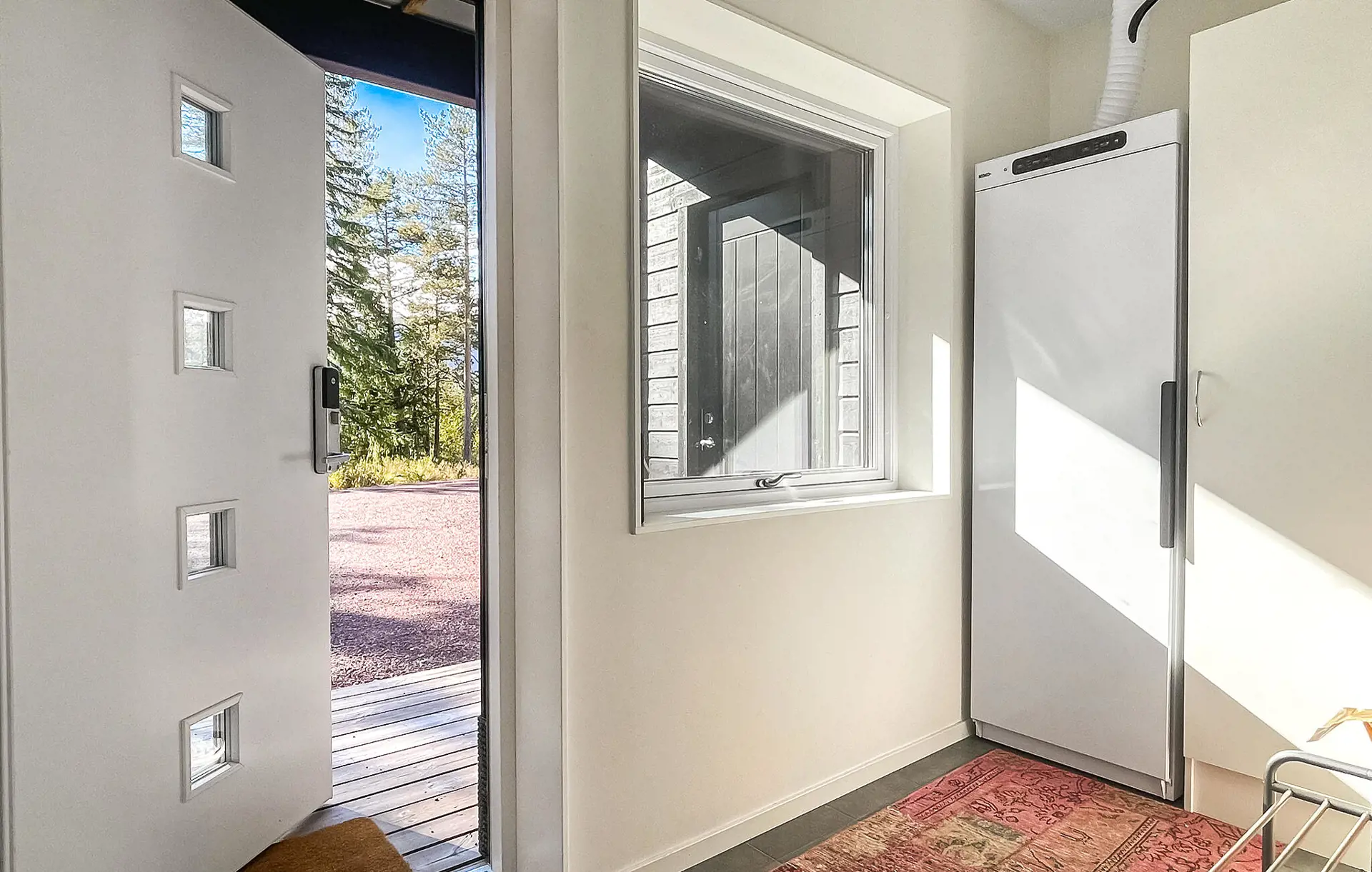 Nutzen Sie die Sitzgelegenheit auf der kleinen Terrasse, um bei einer Tasse Kaffee in den Tag zu starten oder den Abend an der frischen Luft ausklingen zu lassen. Beobachten Sie die umliegende Natur oder erkunden Sie die direkt angrenzenden Wege.
