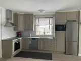 Im ruhigen Schlafzimmer erwartet Sie ein komfortables Doppelbett, und das helle, moderne Badezimmer ist mit einer praktischen Duschkabine ausgestattet. Falls Sie zu fünft reisen, kann auf Wunsch ein zusätzliches Bett im Wohnzimmer aufgestellt werden.