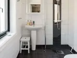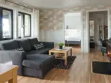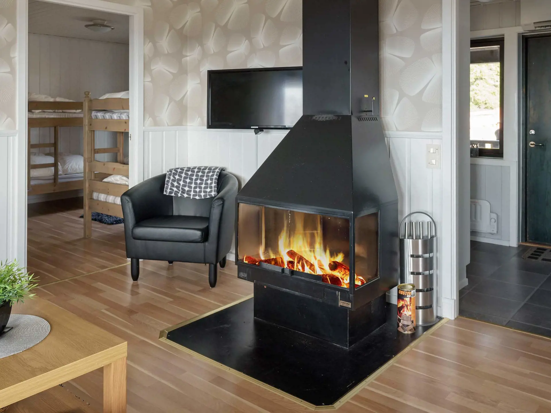 Das Ferienhaus ist modern und wurde 2020 komplett renoviert. Vom Eingang mit viel Platz für Oberbekleidung und Garderobe betritt man den geräumigen Küchen-/Wohnbereich mit Ess- und Sitzecke sowie gemütlich wärmendem Kaminofen für kühlere Abende. Außerdem gibt es zwei Schlafzimmer im Haus; eines mit Doppelbett, das zweite mit zwei Etagenbetten. Das geräumige, moderne Badezimmer grenzt an den Eingangsbereich. Vom Wohnbereich betreten Sie die schöne Veranda des Hauses mit herrlicher Aussicht und Platz zum Entspannen nach einem aktiven Tag in der Natur.