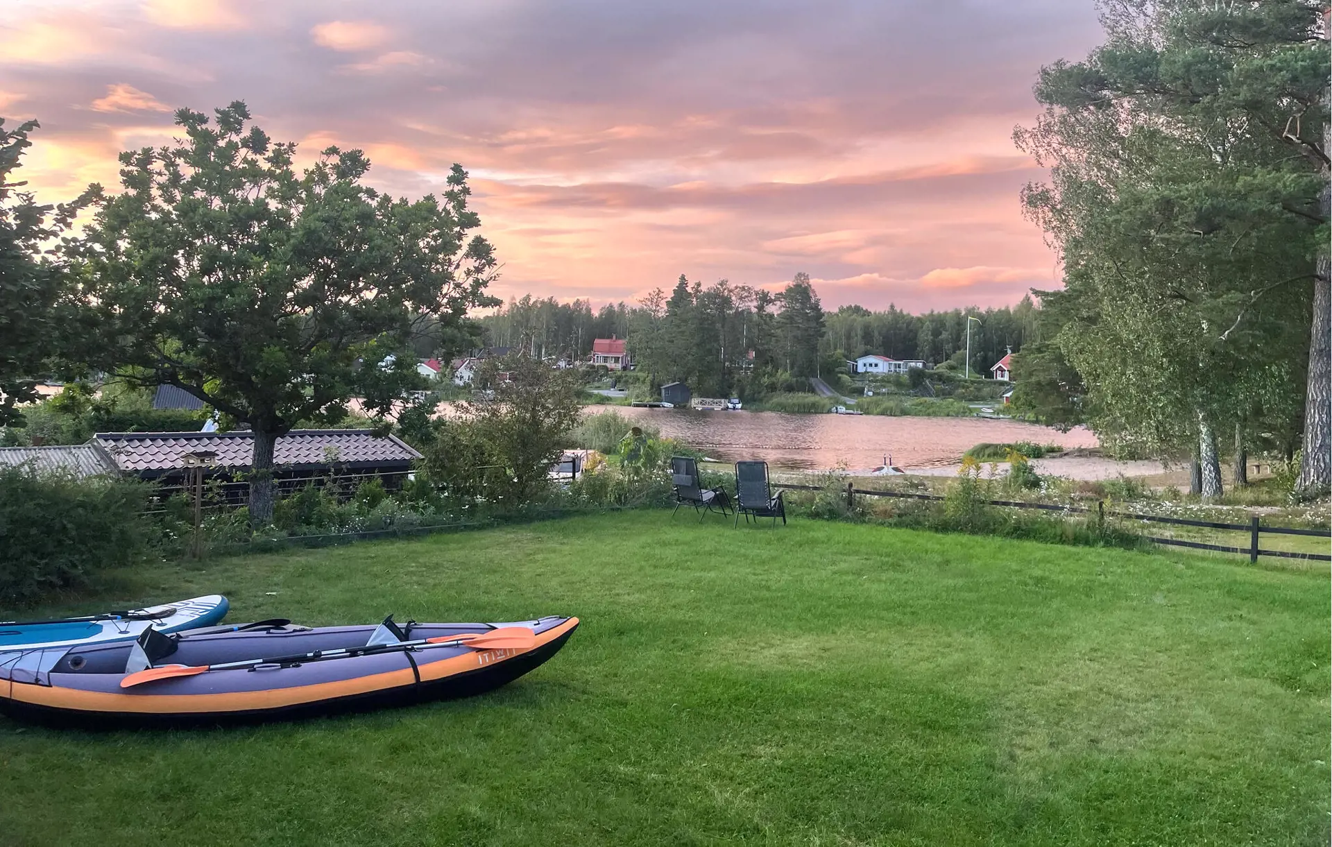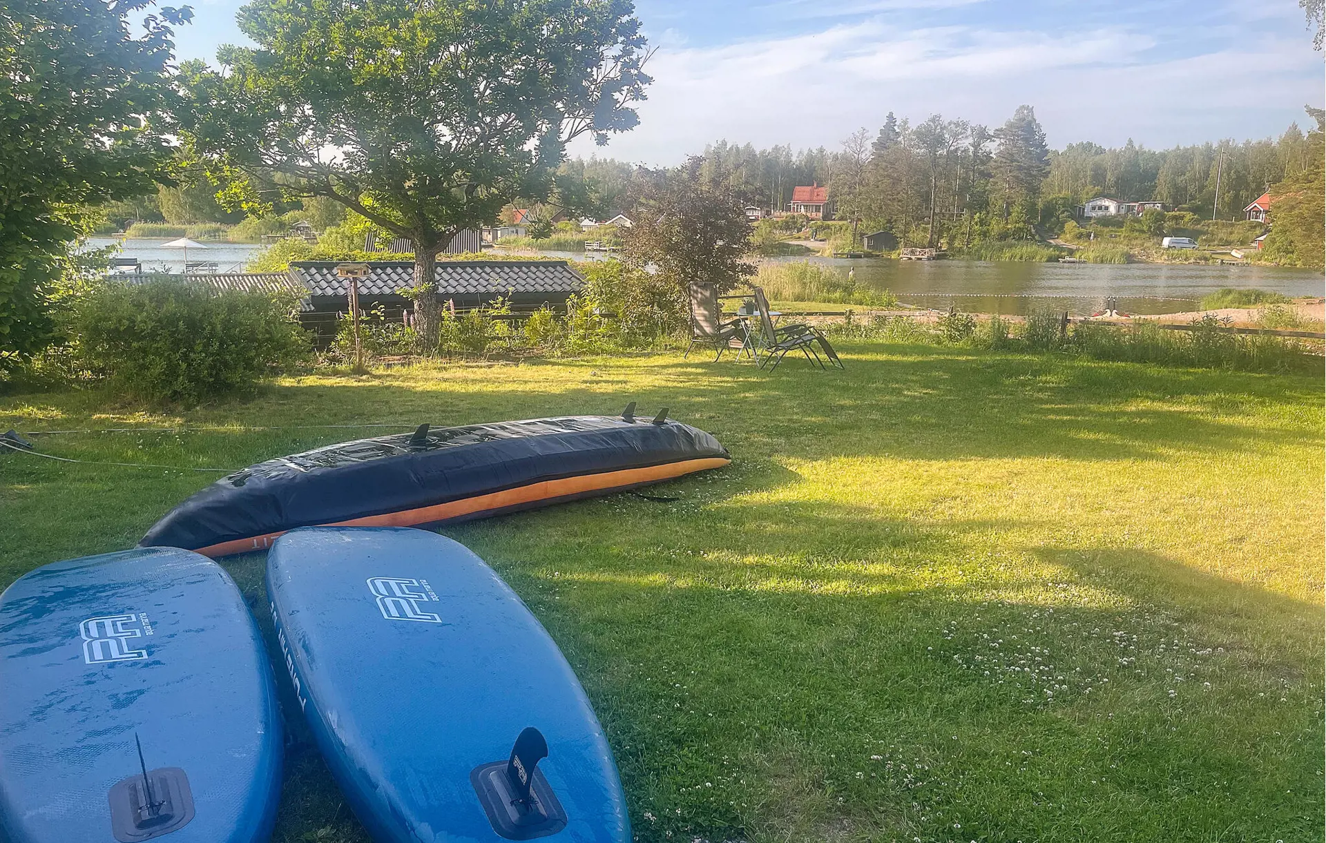 Gehen Sie hinaus in den gepflegten Garten und lassen Sie den Blick über den Närsjöfjärden schweifen. Setzen Sie sich auf die Terrasse oder an den Sitzbereich auf der Rasenfläche und genießen Sie die ruhige Umgebung mit ihren Bäumen und offenen Flächen, die zu kleinen Spaziergängen einlädt.