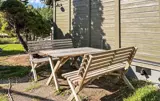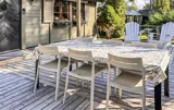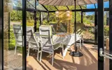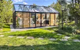 Das Gewächshaus dient als Wintergarten, in dem Sie der Natur nahe sein können. Dies ist ein perfekter Ort, um sich zu Mahlzeiten oder zum Kaffeetrinken zu versammeln, auch wenn es draußen regnet oder kühl ist. Dank der Sonnenstrahlen wird es schnell warm, aber es lässt sich auch leicht lüften.