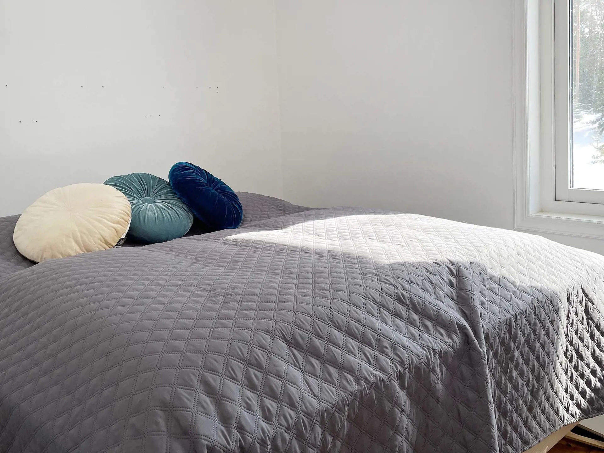 Es gibt 3 Betten in zwei Schlafzimmern, eines mit einem Doppelbett und eines mit einem Einzelbett. In der Hütte gibt es ein frisches Badezimmer mit Dusche, Waschbecken und separater Toilette.