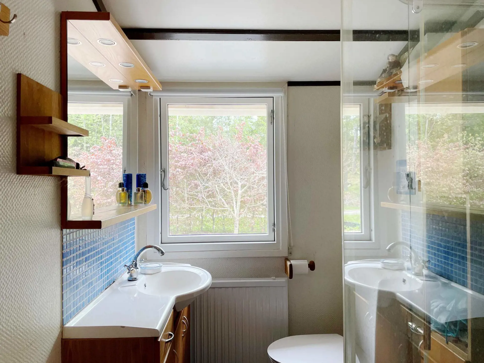 Outdoors, you’ll find a spacious wooden deck where you can relax in sun loungers, soak in the hot tub under the stars, and enjoy a refreshing drink in the enclosed bar area. Perfect for those who want to treat themselves to something extra during the holidays! Bicycles are available for you to borrow so you can ride down to the beach for a swim. Don’t miss the chance to take a boat ride on Infjärden – the owner will provide instructions and guidance.