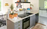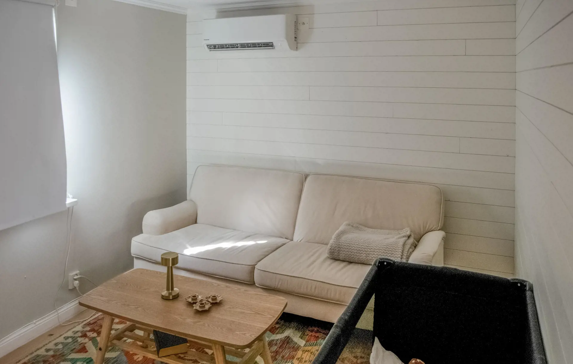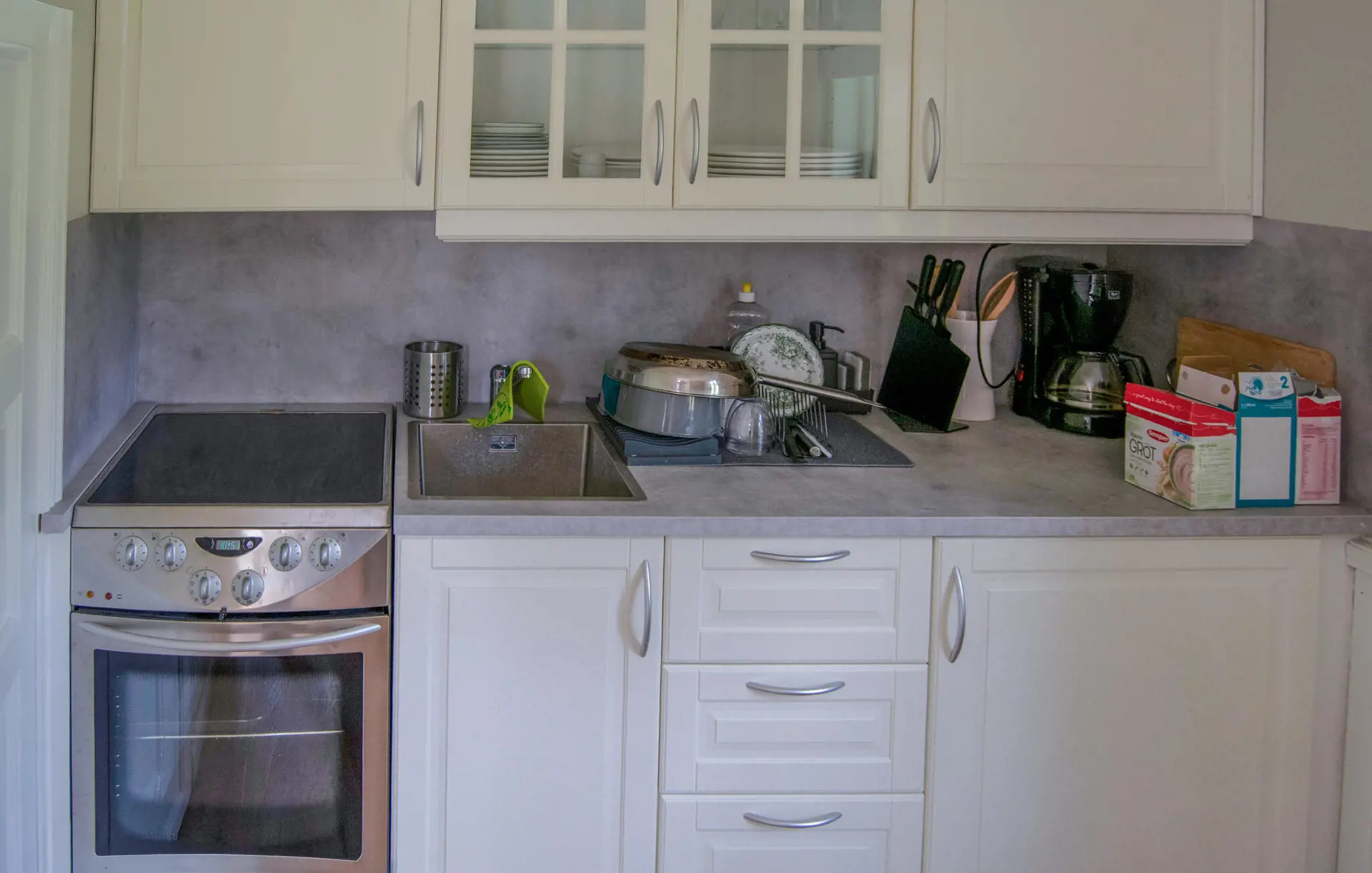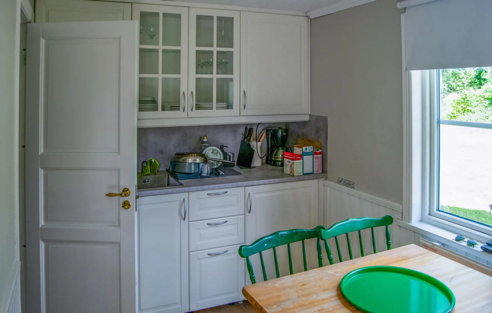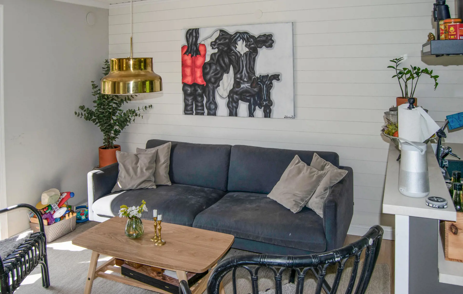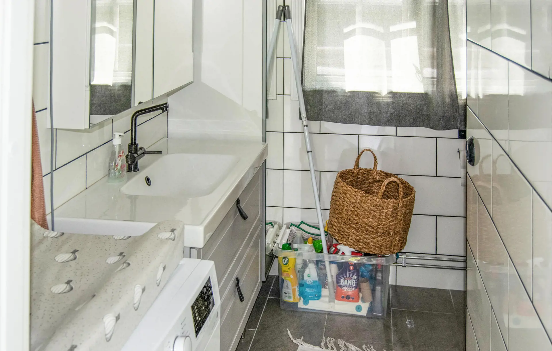 In Ihrem Ferienhaus, das skandinavische Schlichtheit mit Gemütlichkeit verbindet, finden Sie Ruhe, frische Luft und die Nähe zur Natur – ideal für eine Auszeit vom Alltag. Entspannen Sie auf dem bequemen Sofa, genießen Sie den Blick ins Grüne oder lassen Sie sich vom Knistern des Kaminofens wärmen. Die kleine Küche lädt dazu ein, gemeinsam zu kochen. Helle Holztöne, stilvolle Details und geschmackvolle Möbel schaffen ein harmonisches Ambiente, während ein kleiner Esstisch Platz für gemütliche Mahlzeiten bietet.
