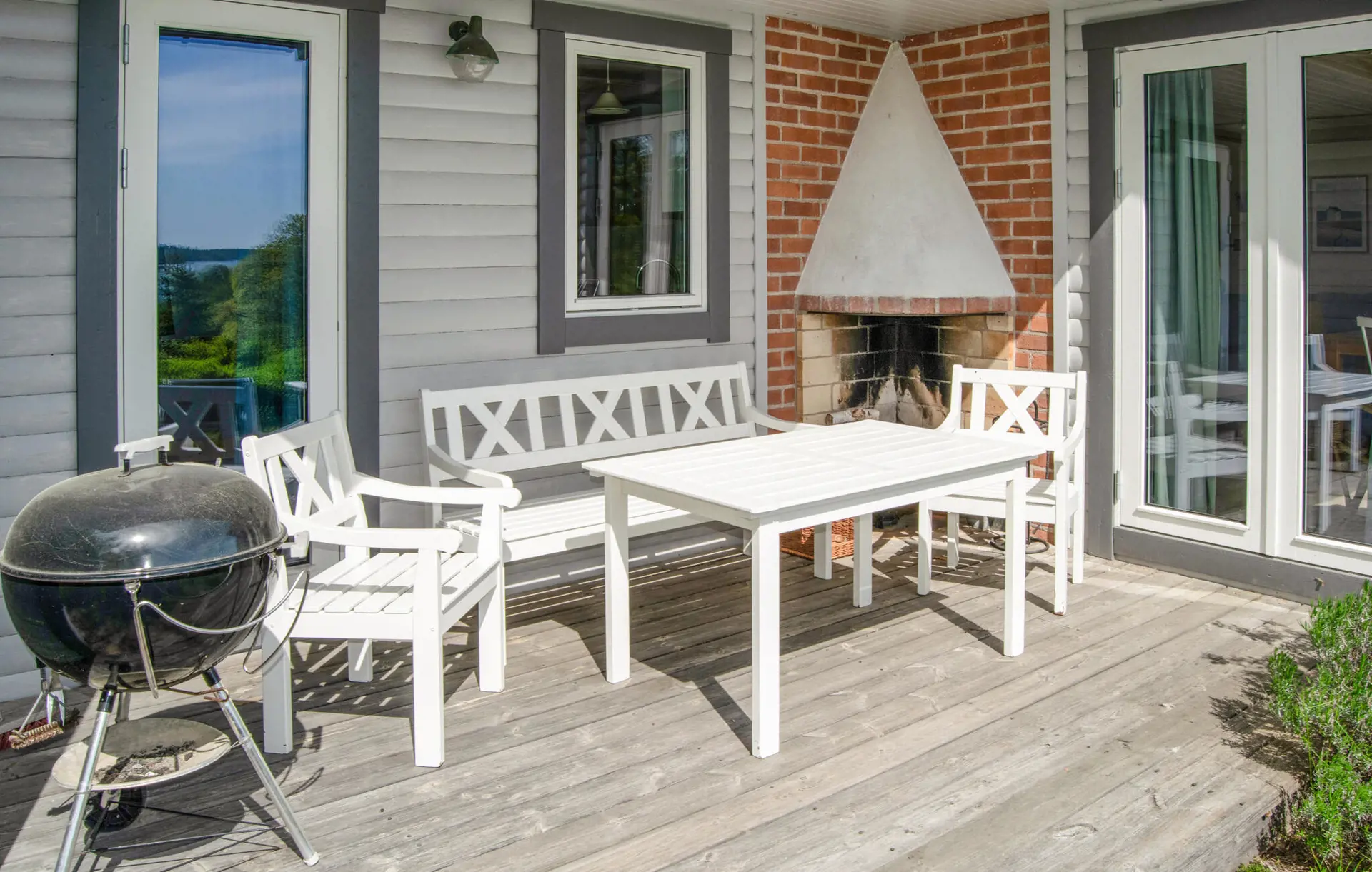 Erleben Sie eine entspannte Auszeit in diesem typisch skandinavischen Ferienhaus. In einer ruhigen Lage und umgeben von Wald und Wasser verbringen Sie hier ungestörte Tage. Machen Sie es sich im wohnlichen Innenbereich bequem. Das Haus besticht durch seine Holzoptik, große Fenster mit Meerblick und eine freundliche, natürliche Einrichtung. Entspannen Sie auf dem großzügigen Ecksofa oder genießen Sie die Aussicht vom Esstisch aus. Der Kamin sorgt an kühleren Abenden für wohlige Wärme. In der Küche finden Sie alles Nötige für die Selbstversorgung.