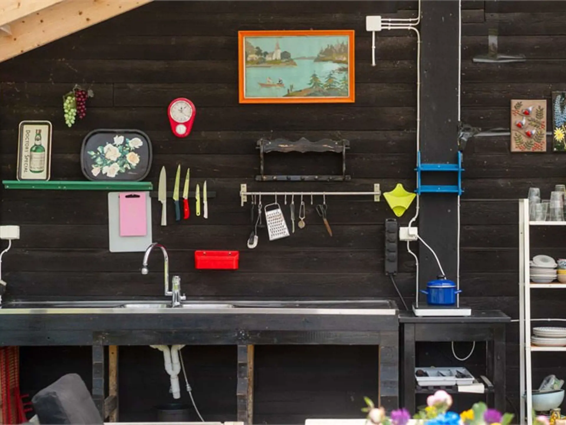 Eine große Terrasse mit Außenküche und Grill lädt zum Kochen im Freien ein. Dieser Teil ist überdacht und mit einem langen Tisch für gemütliche Runden ausgestattet – perfekt für lange, sonnige Sommerabende. Der andere Teil ist offen. Auf dem Grundstück befindet sich außerdem ein Nebengebäude (Annex) mit einem weiteren Schlafsofa für zwei Personen. Das Haus verfügt über eine Außentoilette und eine Außendusche.