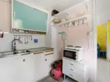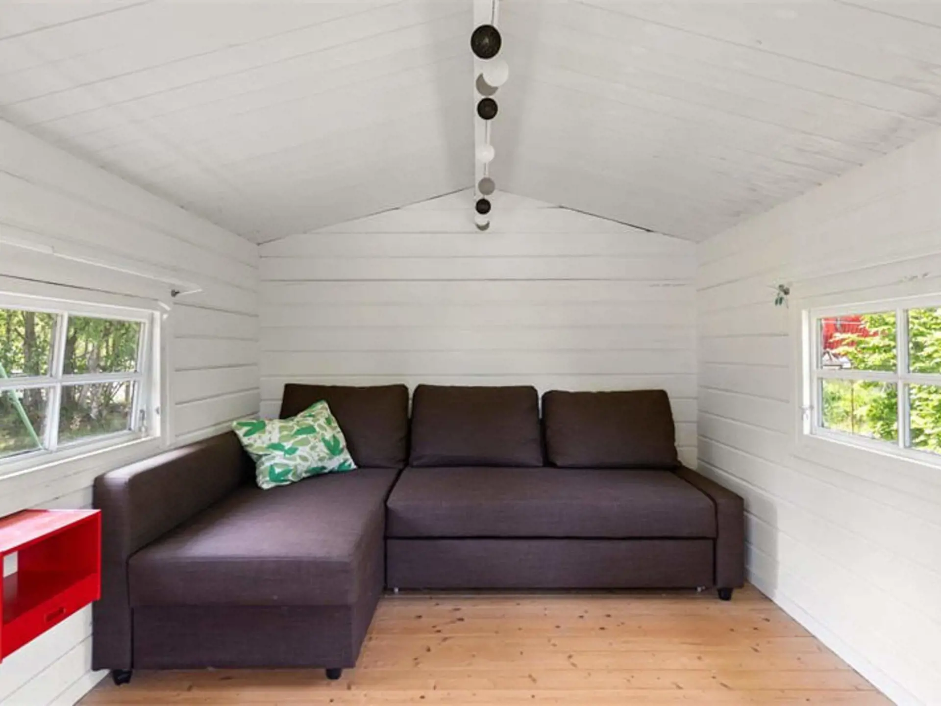 Das Ferienhäuschen selbst ist ein wahres Schmuckstück: schlicht, aber gemütlich und farbenfroh eingerichtet, jedes Zimmer in hellen Farben gestrichen. Es besteht aus Wohnzimmer, Küche und Schlafzimmer. Im Wohnzimmer befinden sich ein Schlafsofa für zwei Personen, ein Sofa, ein Tisch mit Stühlen in einer Nische und ein offener Kamin für kühlere Abende. Im Schlafzimmer gibt es ein Etagenbett und ein Kinderbett.
