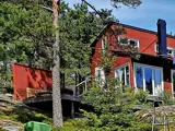 Just 300 meters from the house is the Baltic Sea, you can see a glimpse of the water from the house. On soft forest paths you go down and take a dip from the rocks, if you want a sandy beach it is 500 meters in the other direction. There are nice nature trails in the area for walks. There is a grocery store, restaurants and a bus to Stockholm in Stavsnäs, where you can also take the archipelago boats further out into the archipelago or into Stockholm.
