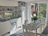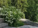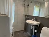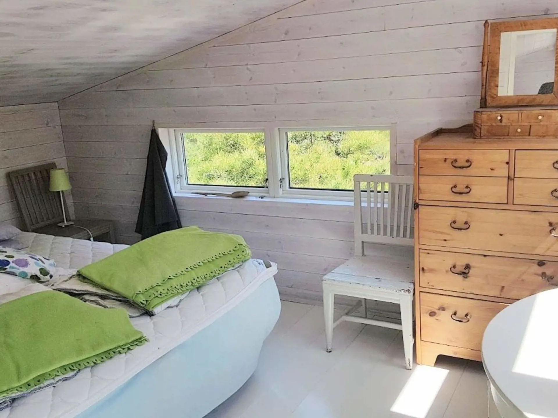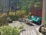 The cozy architect-designed house is located high on the plot, with several balconies at different levels, where you can really enjoy the sun all day long. The house has two floors; upstairs there are two bedrooms with two beds in each and on the entrance floor there is a kitchen, bathroom and living room. The house has many windows with a view of the pleasant mountain plot. If you go down the path from the house there is access to a sauna and outdoor shower. On the balcony by the kitchen there is an outdoor kitchen with a grill and seating for nice dinners.