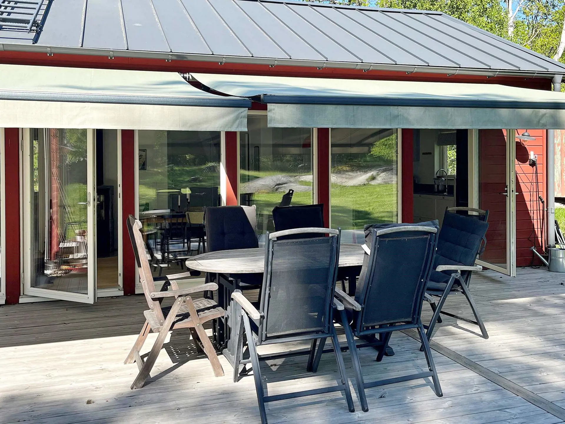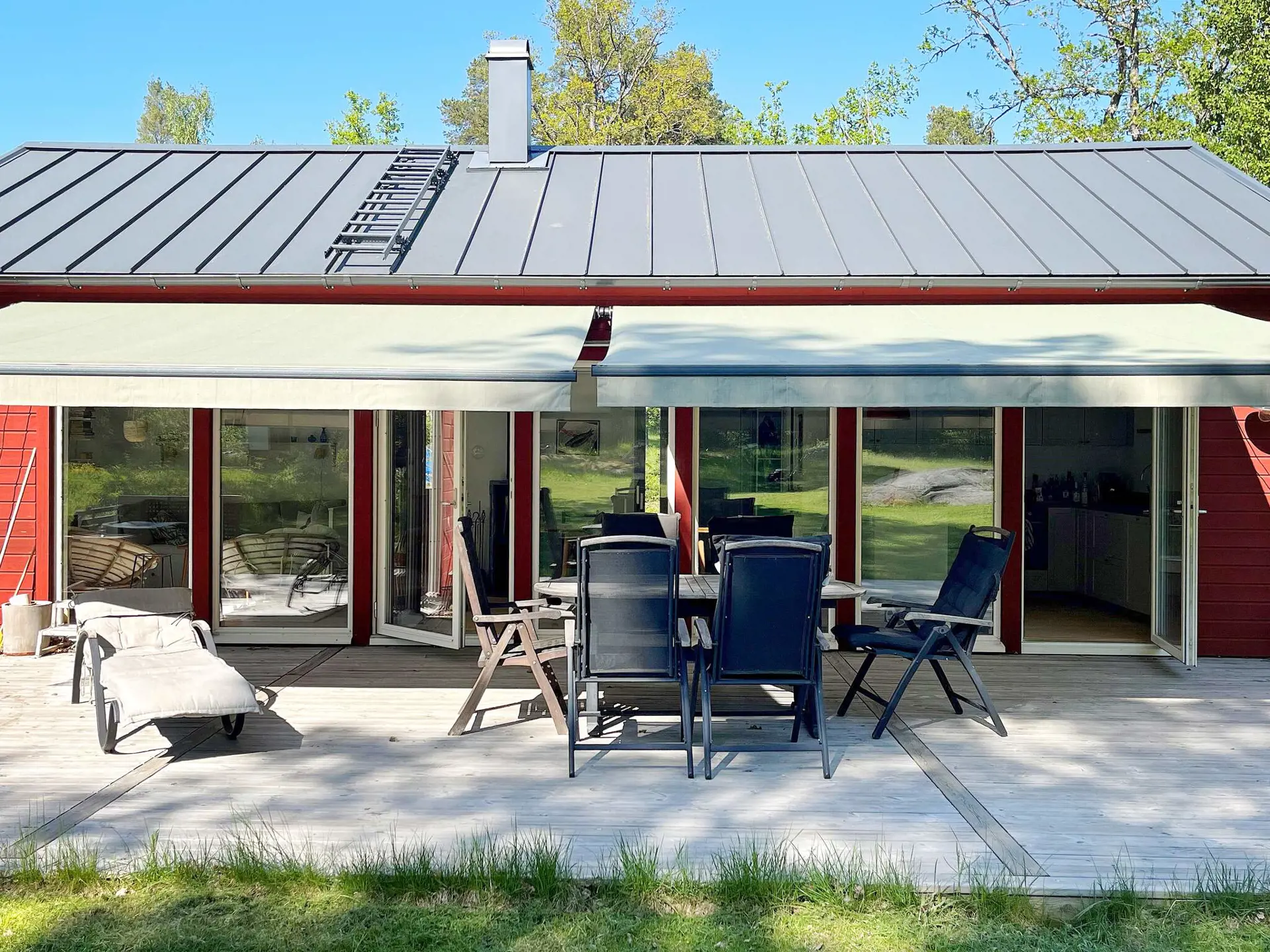 Dank der fantastischen Nähe zum Meer und See können Sie Ihren Tag hier mit einem Bad von der nur wenige Minuten entfernten Badeleiter auf dem Steg beginnen. Über diese Fußgängerbrücke können Sie bei einem kurzen Spaziergang auch Norra Tynningö erreichen, von wo aus Sie mit dem Boot nach Vaxholm fahren können, wo es im Sommer floriert! Dort können Sie im Hafen gutes Essen genießen, durch die Gassen zwischen schönen Häusern und Gärten, Cafés und Geschäften schlendern. Dort finden Sie auch die Dienstleistungen, die Sie möglicherweise benötigen, wie ein Lebensmittelgeschäft, eine Apotheke usw. Von Vaxholm aus starten mehrere Bootsfahrten zu anderen Inseln im Schärengarten und ins Zentrum von Stockholm. Hier gibt es für alle Interessen und Altersgruppen viel zu entdecken. Mit der Autofähre erreichen Sie Norra Lagnö und weiter nach Gustavsberg, wo es einen großen Einkaufsmarkt gibt, der sich perfekt zum Eindecken von Lebensmitteln auf dem Weg zur Unterkunft eignet. Es gibt auch einen unbemannten Laden auf Tynningö mit den gängigsten Artikeln, die man benötigen könnte.