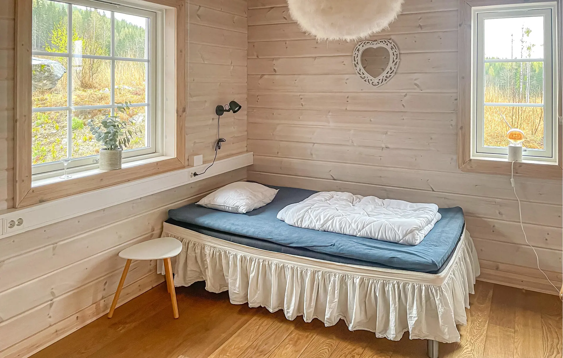Verbringen Sie erholsame Tage in diesem komfortablen Holzhaus mit weitem Blick über Wälder und Wiesen.