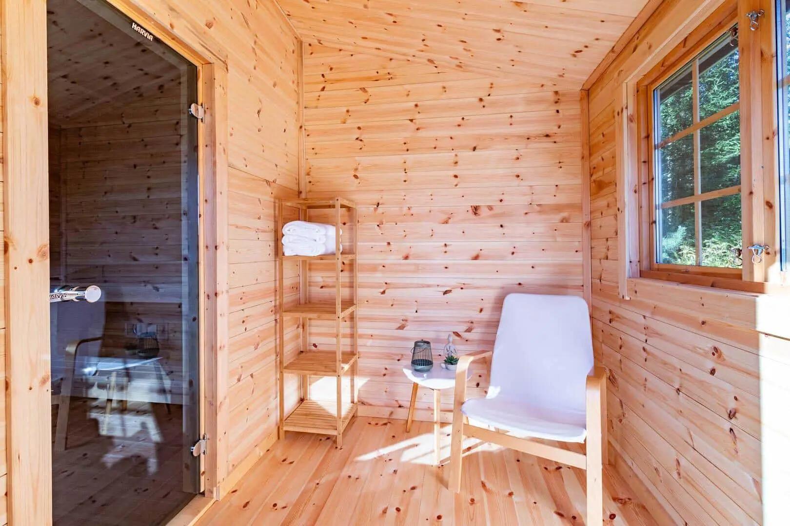 - Sauna Die Sauna inklusive Holz kann für 100 EUR pro Woche gemietet werden.