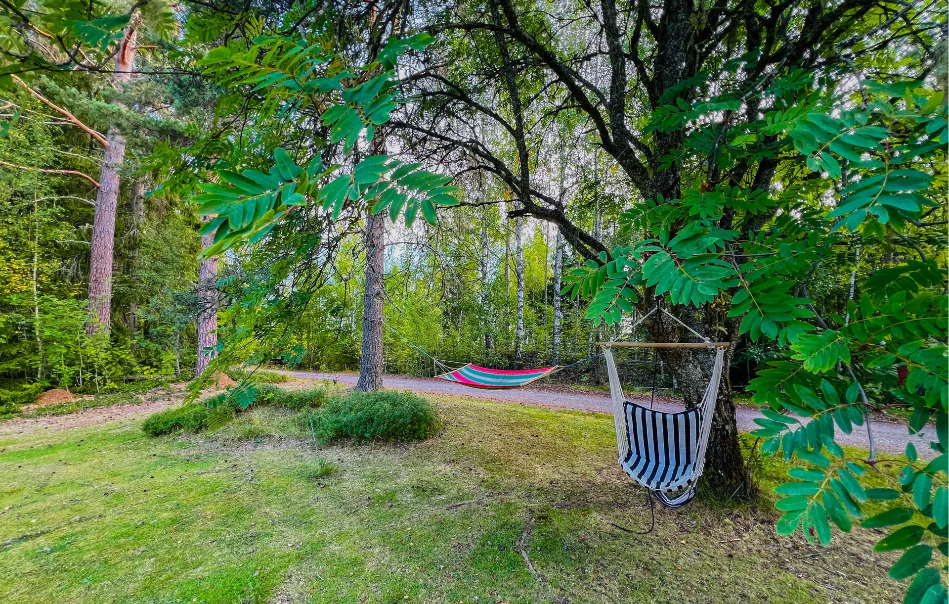 Auf Ihrem großen, von Wald umsäumten Grundstück können Ihre Kinder ausgelassen mit dem Hund an der frischen Luft toben. Genießen Sie derweil die friedliche Atmosphäre in der Hängematte, spazieren Sie für erfrischende Bäder zum Fluss und servieren Sie leckere Mahlzeiten unter dem Sonnenschirm.