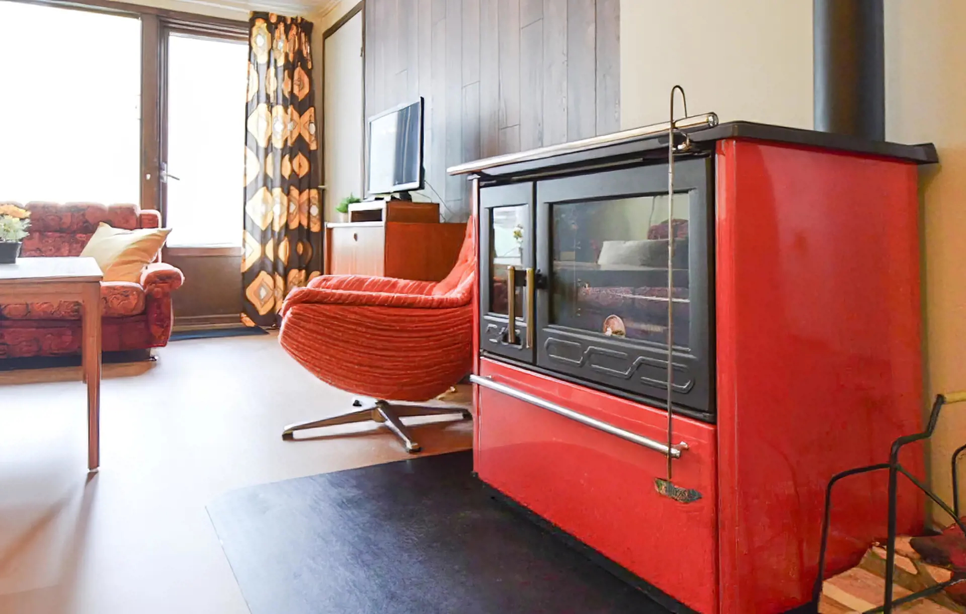 Das Haus ist der geeignete Rückzugsort für Sie, wenn Sie den hektischen Alltag hinter sich lassen möchten und ein einfache, aber gemütliche Unterkunft bevorzugen. Entspannen Sie sich bei einer Tasse Kaffee im Wohnraum, der mit Vintage-Möbeln und einem imposanten Kaminofen behaglich eingerichtet ist. Kochen Sie in der kleinen Küche und genießen Sie Ihre Mahlzeiten mit einem Glas Wein.