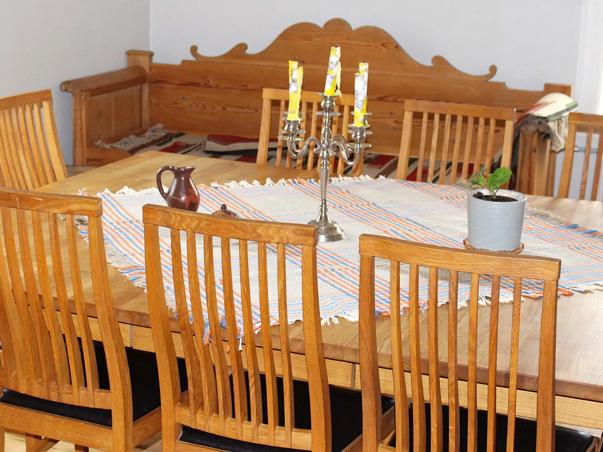 Sie wohnen in einem sehr großen Haus auf zwei Etagen. Im Erdgeschoss befinden sich eine gemütliche Küche mit großem Essbereich, ein geräumiges Wohnzimmer mit Zugang zu einem Schlafzimmer mit zwei Betten sowie ein Badezimmer mit Dusche und Waschmaschine in der Nähe des Eingangs. Im Obergeschoss gibt es fünf Schlafzimmer, wobei eines durchquert werden muss, um ein weiteres zu erreichen, sowie ein Badezimmer mit Dusche und WC. Eine schöne Balkon lädt zum Genießen der Aussicht ein, und am Eingang befindet sich eine überdachte Terrasse. Die Eigentümer wohnen auf demselben Grundstück, und die Buchung eines Bootes erfolgt direkt vor Ort über den Eigentümer.