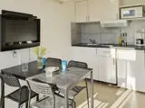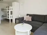 Die Wohnfläche ist gut aufgeteilt und bietet trotz der wenigen Quadratmeter Dank hoher Decken und großer Fenster viel Licht. Es besteht die Möglichkeit, in der Kochnische Ihre Mahlzeiten zuzubereiten und Sie haben auch Zugang zu einem Außengrill. Die Schlafgelegenheiten bestehen aus einem Etagenbett und einem Schlafsofa für jeweils zwei Personen. Helles Badezimmer mit Dusche, Waschbecken und Toilette in jedem Haus.