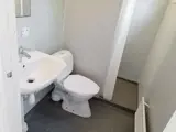 Am Eingang an der Vorderseite des Hauses befinden sich Gartenmöbel auf der Holzterrasse für gemeinsame Momente und Entspannung. Im Servicegebäude, das von den vier Miethäusern gemeinsam genutzt wird, findet man eine Waschmaschine sowie weitere Duschen und Toiletten.