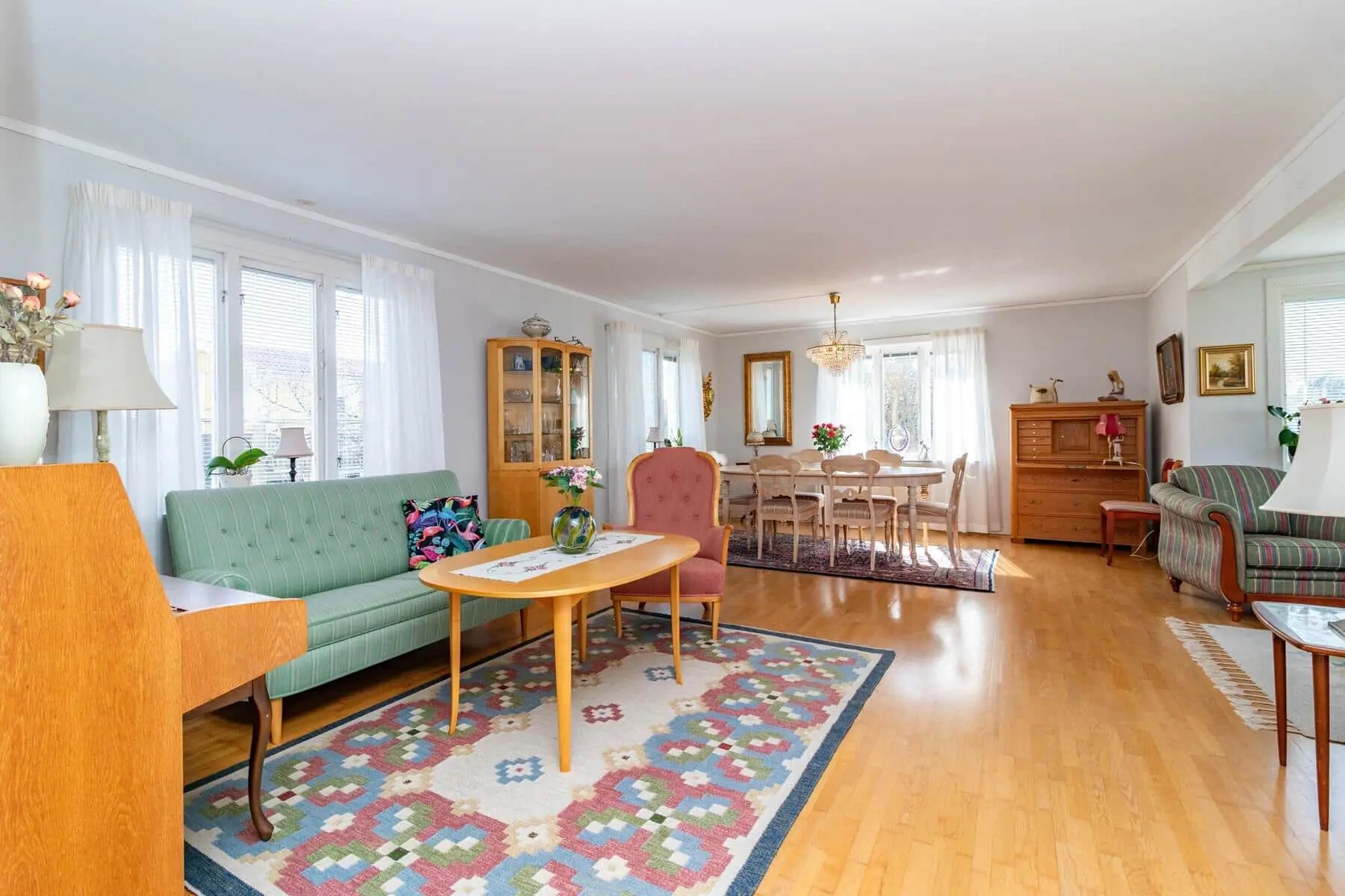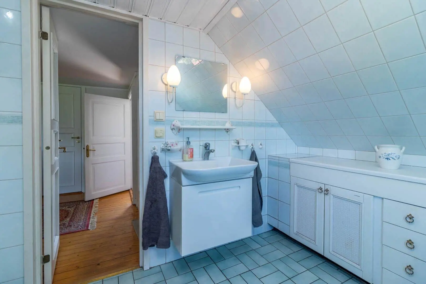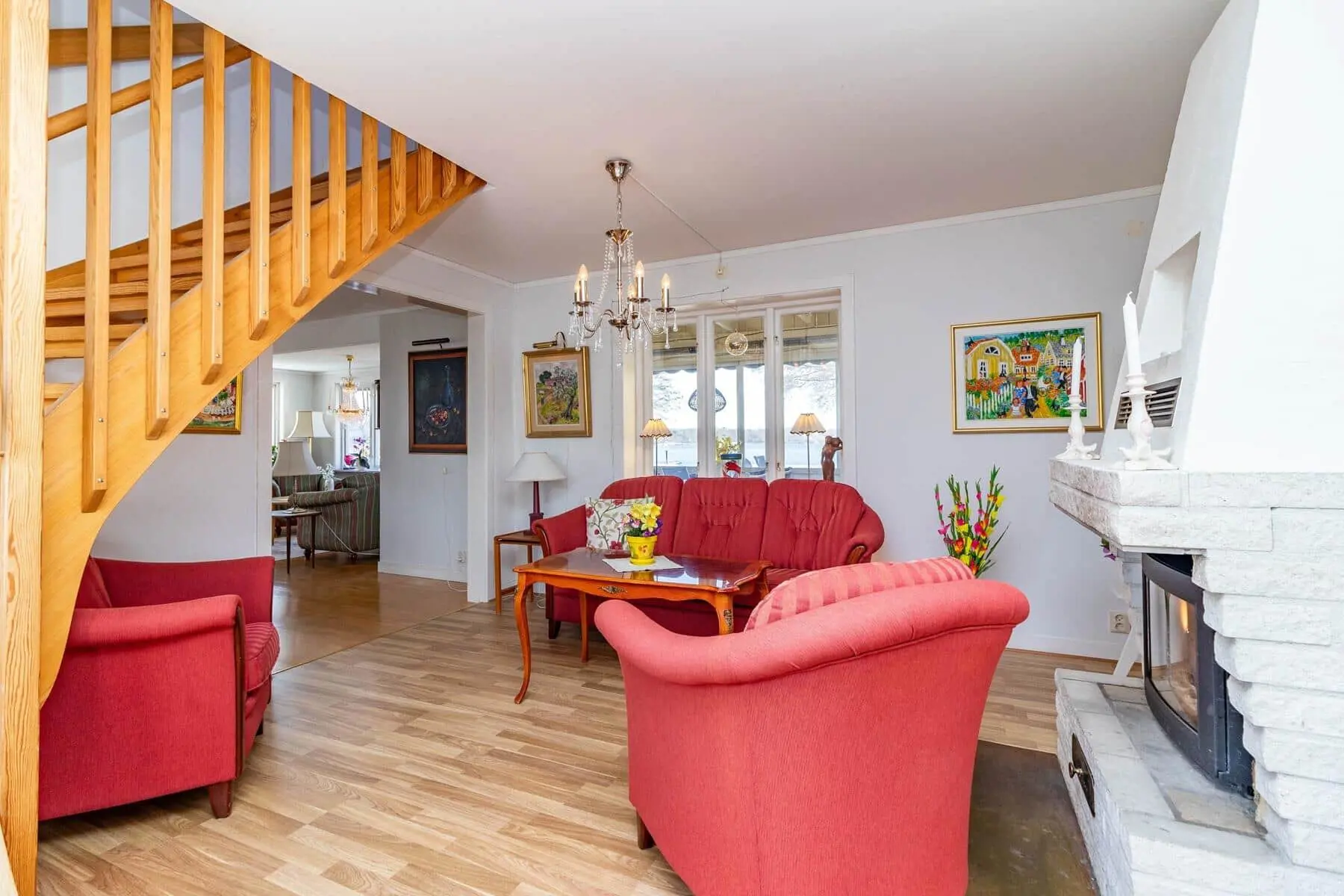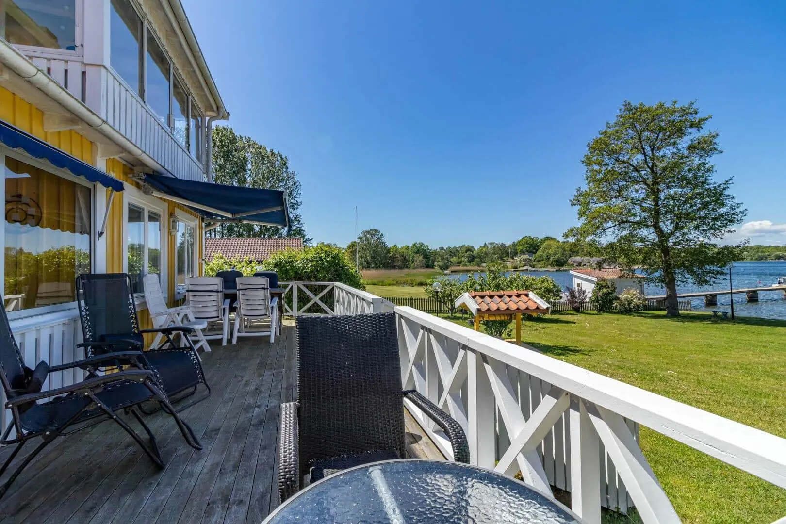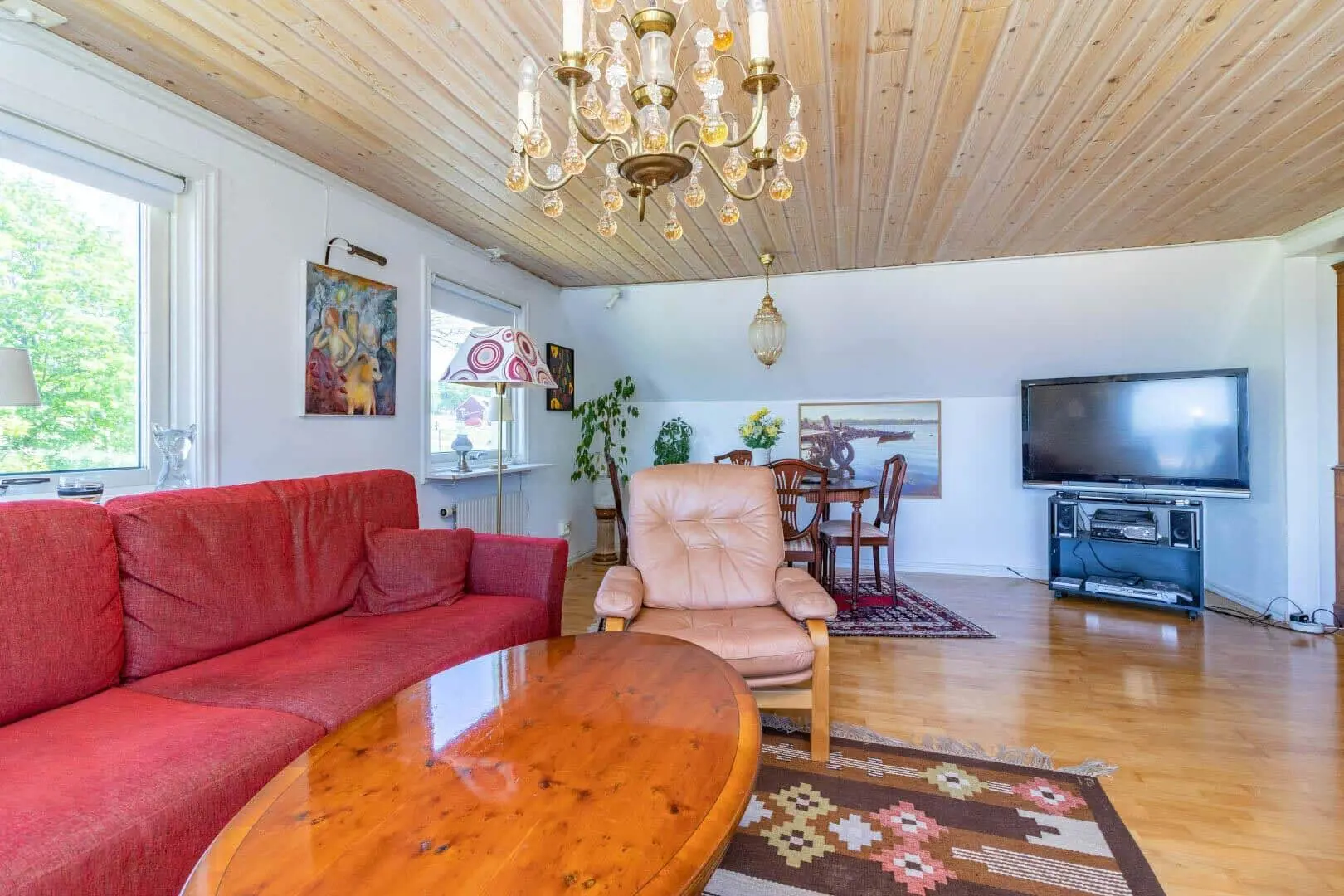 Mit seinen großzügigen 220 m² Wohnfläche bietet das Haus viel Platz für bis zu 6 Personen. Im Inneren erwarten dich 3 gemütliche Wohnzimmer, 2 Schlafzimmer, 2 Esszimmer, eine voll ausgestattete Küche sowie 2 Badezimmer. Die Schlafräume sind praktisch aufgeteilt: Ein Zimmer bietet 1 Einzelbett und 1 Doppelbett, ein weiteres verfügt über ein Doppelbett; dazu kommt eine zusätzliche Schlafmöglichkeit auf einem Schlafsofa in einem gemütlichen Durchgangszimmer. Zur Ausstattung gehören TV, CD-/DVD-Player, Radio und Internetzugang. Für behagliche Stunden sorgt ein Kamin. In der Küche findest du alles, was du brauchst: Herd mit 4 Platten, Backofen, Dunstabzug, Kühl-/Gefrierkombination, Spülmaschine, Mikrowelle und Kaffeemaschine. Auch eine Waschmaschine steht zur Verfügung. Draußen erwarten dich mehrere Terrassen, teils überdacht, mit passenden Möbeln und einem Grill. Die kleine Terrasse direkt am Wasser teilst du mit dem Ferienhaus “Skärgård” (BLE835). Ein Parkplatz gehört ebenfalls zum Grundstück.