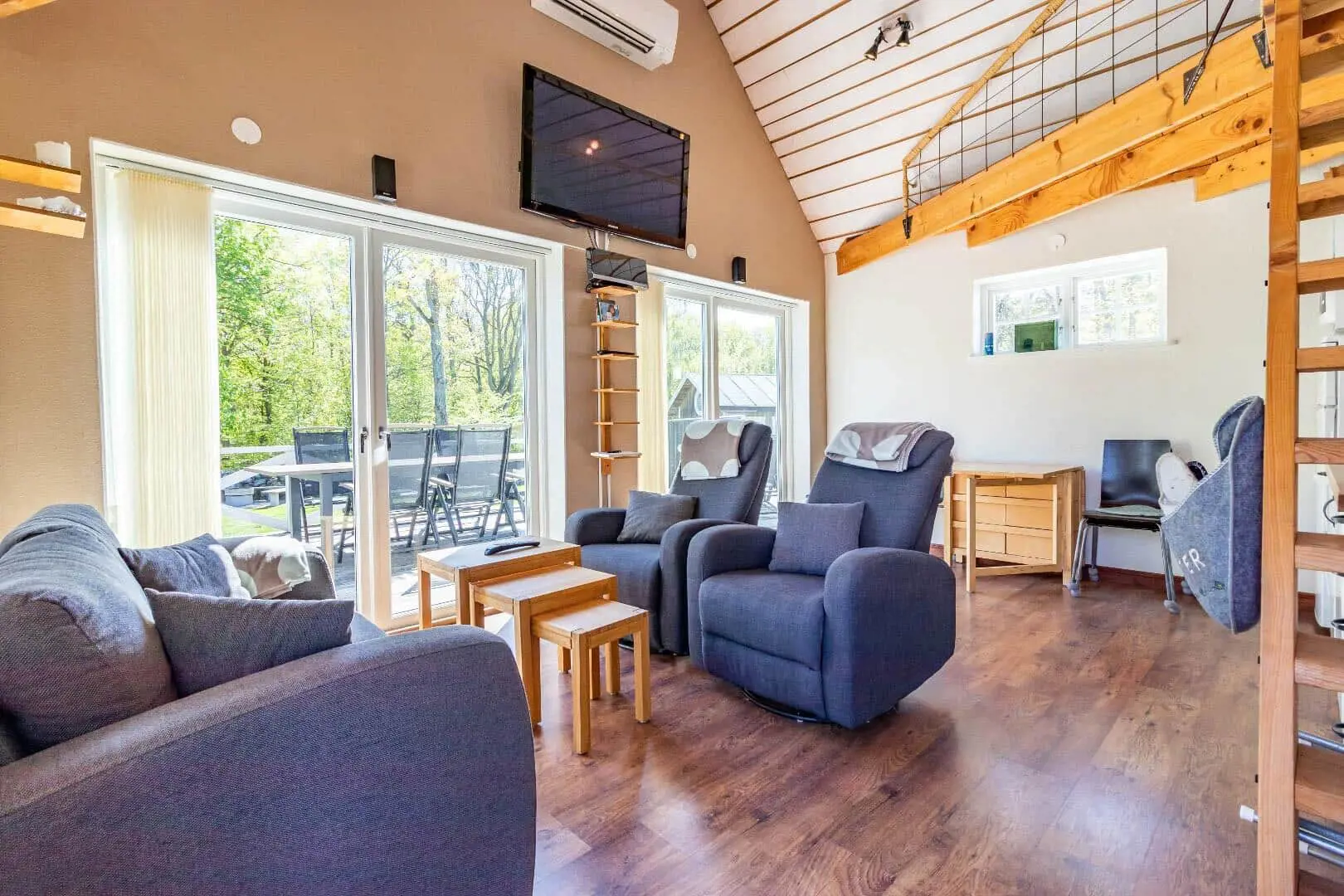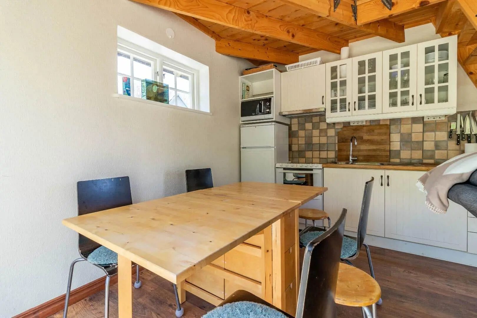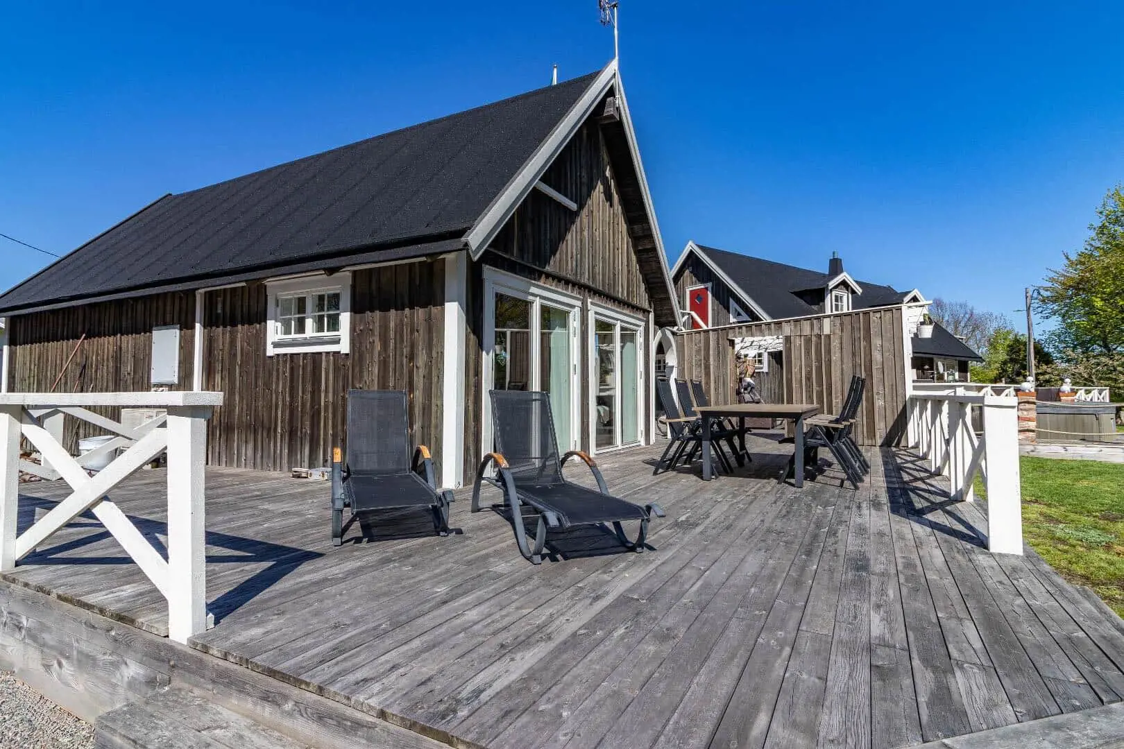 Diese Unterkunft hat eine Fläche von 60 m² und befindet sich auf einem 2.000 m² Grundstück, u.a. mit Schaukel, Sandkasten und Trampolin.