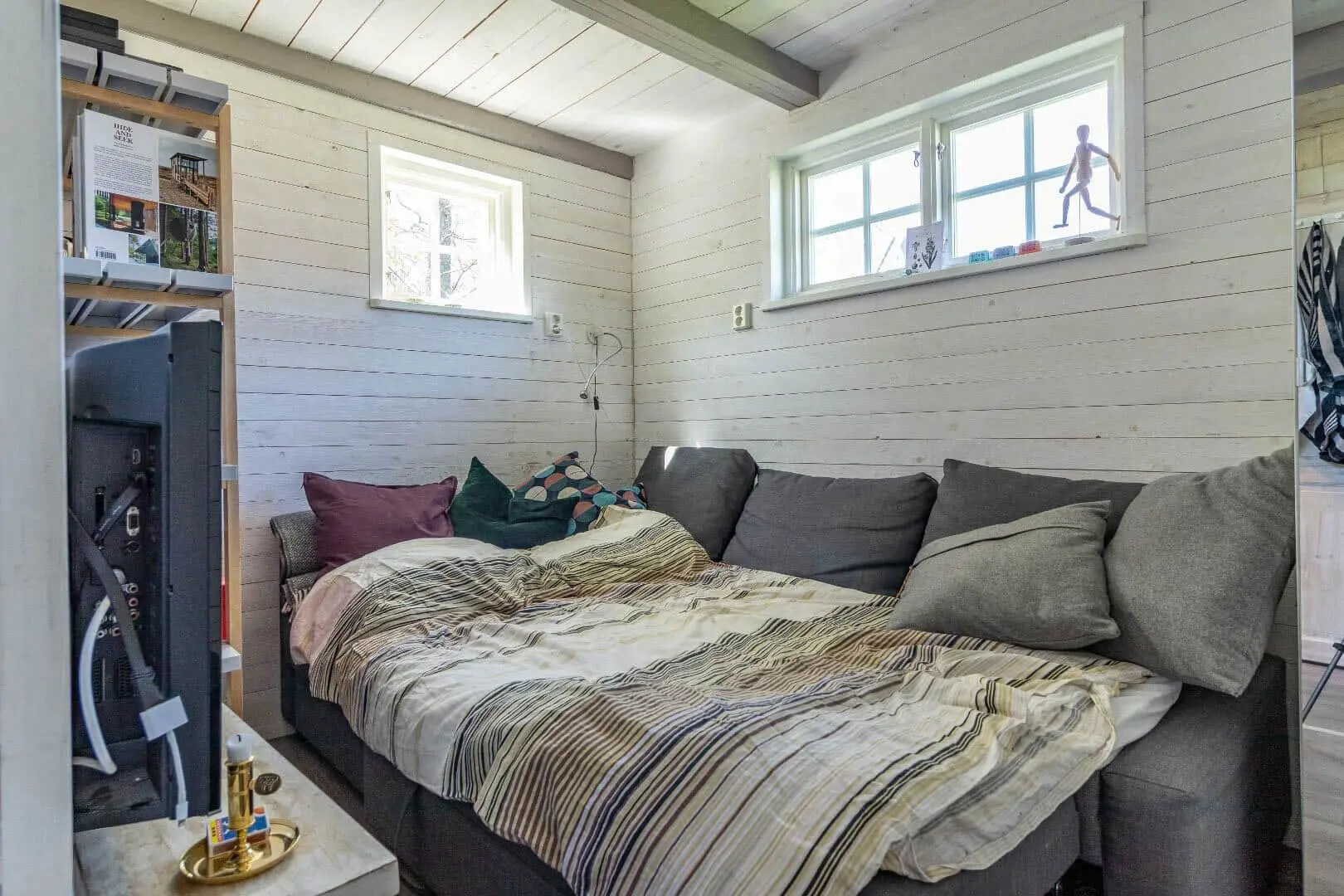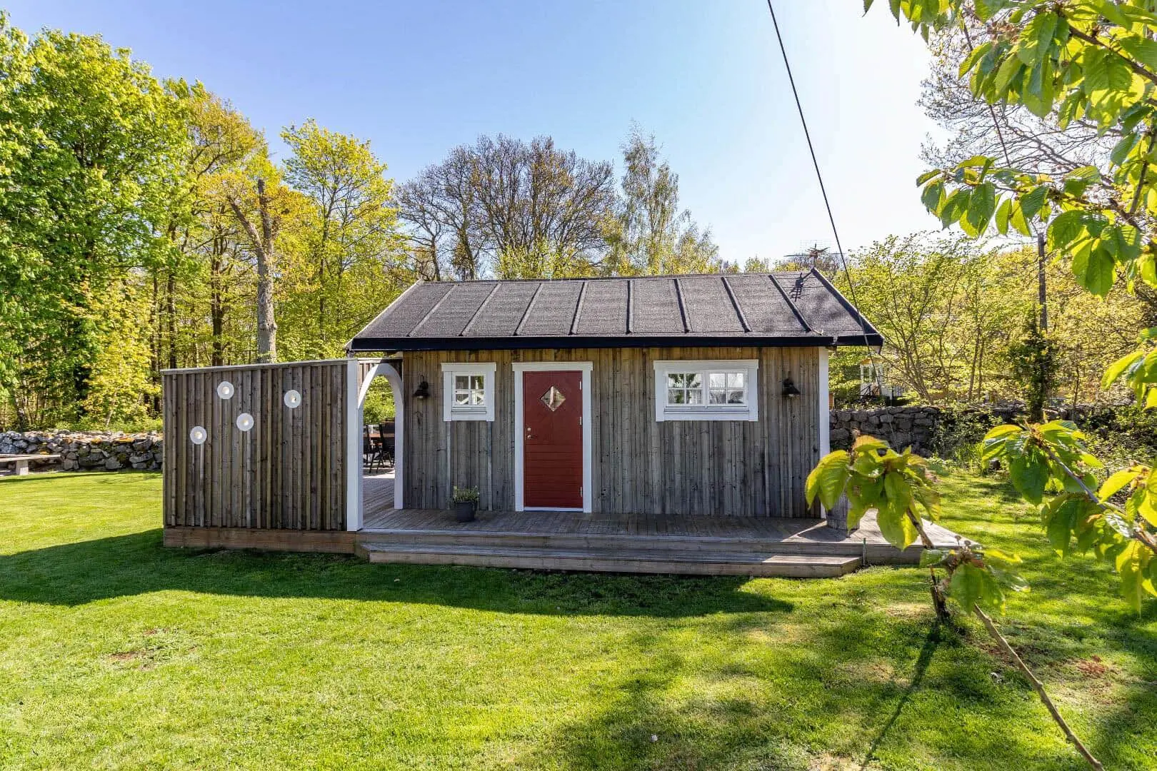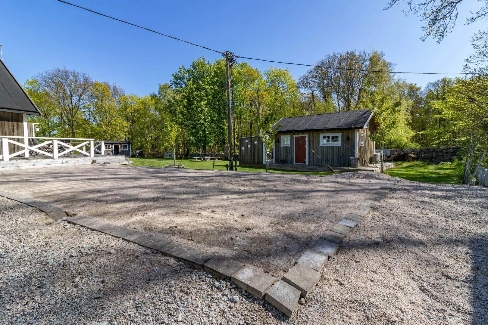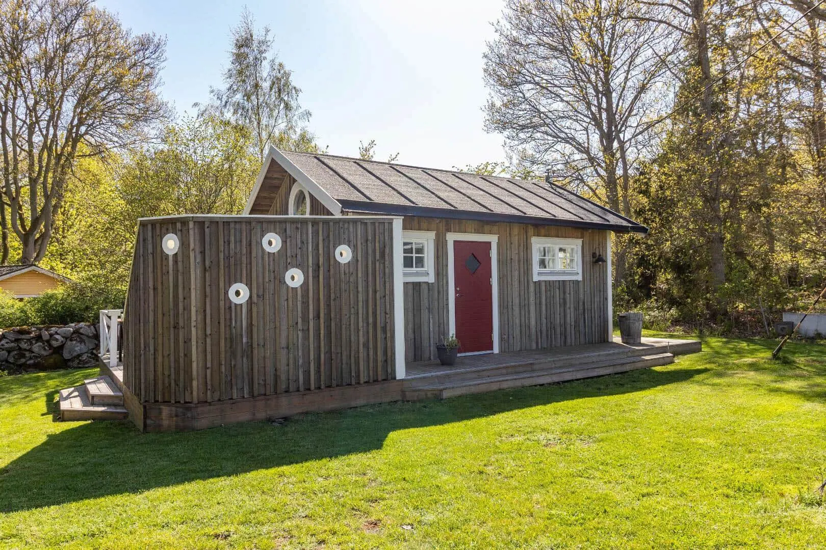 Diese Unterkunft hat eine Fläche von 36 m² und befindet sich auf einem 2.000 m² Grundstück, u.a. mit Schaukel, Sandkasten und Trampolin.