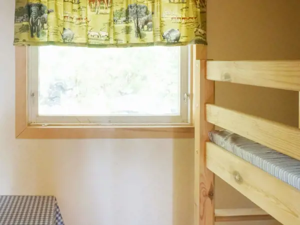 Im Haus kleine Kochnische mit offenem Zugang zum Kinderzimmer mit Etagenbett, das hinten um die Ecke liegt, sowie zum Bad mit Dusche/WC (mit Zimmertür). Außerdem SZ mit Doppelbett und Wohnbereich mit doppelter Schlafcouch als Ausweichmöglichkeit. Das Haus ist für max. 4 Personen geeignet. Schöne Terrassenfläche vor dem Haus für Sonnentage und Grillabende mit Ausblick zur Ostsee.