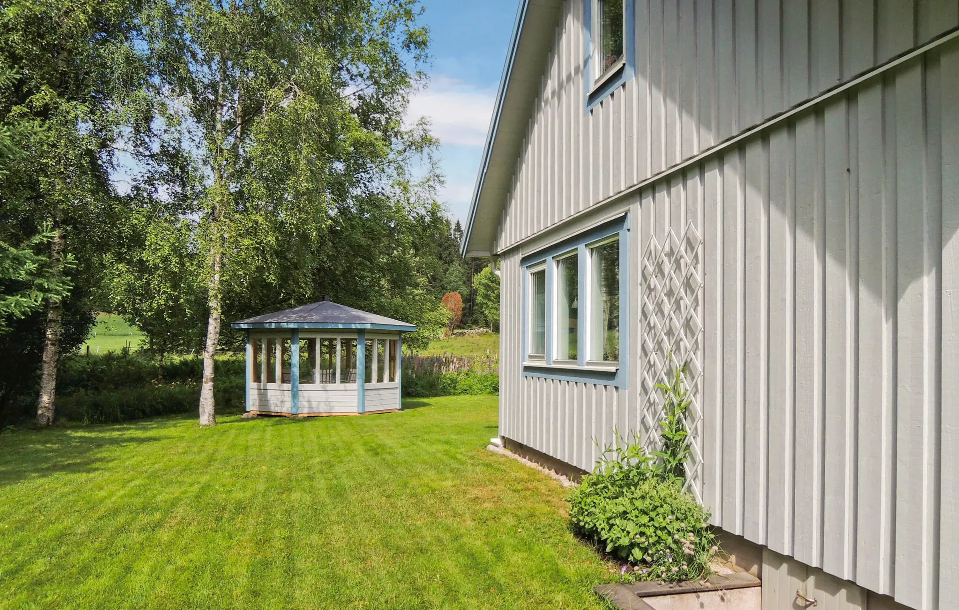 Gepflegtes Haus der mit schöner Einrichtung. Genießen Sie das angenehme Innere, den eindrucksvollen Kaminofen und die Aussicht vom Esstisch. Private Lage 200 m vom Bach Ätran mit der Möglichkeit des temperierten Schwimmbads und der Edelfischerei. 2 Räder. Ullared 16 km. Pavillon 12 m2 mit Gartenmöbeln: Tisch und 6 Stühlen. 7 km vom schönen See Fegen entfernt, wo Sie ein Kanu mieten können. Schöne Bademöglichkeiten im Meer bei Falkenberg und Varberg, 40 km. Ullared 20 km, dort erwartet Sie das Outletcenter Gekås. In Ullared können Sie sich auf abenteuerliche Weise zwischen Baumwipfeln bewegen, ein spannendes Unternehmen für die ganze Familie (Kinder ab 8 Jahre).