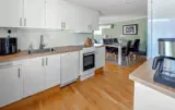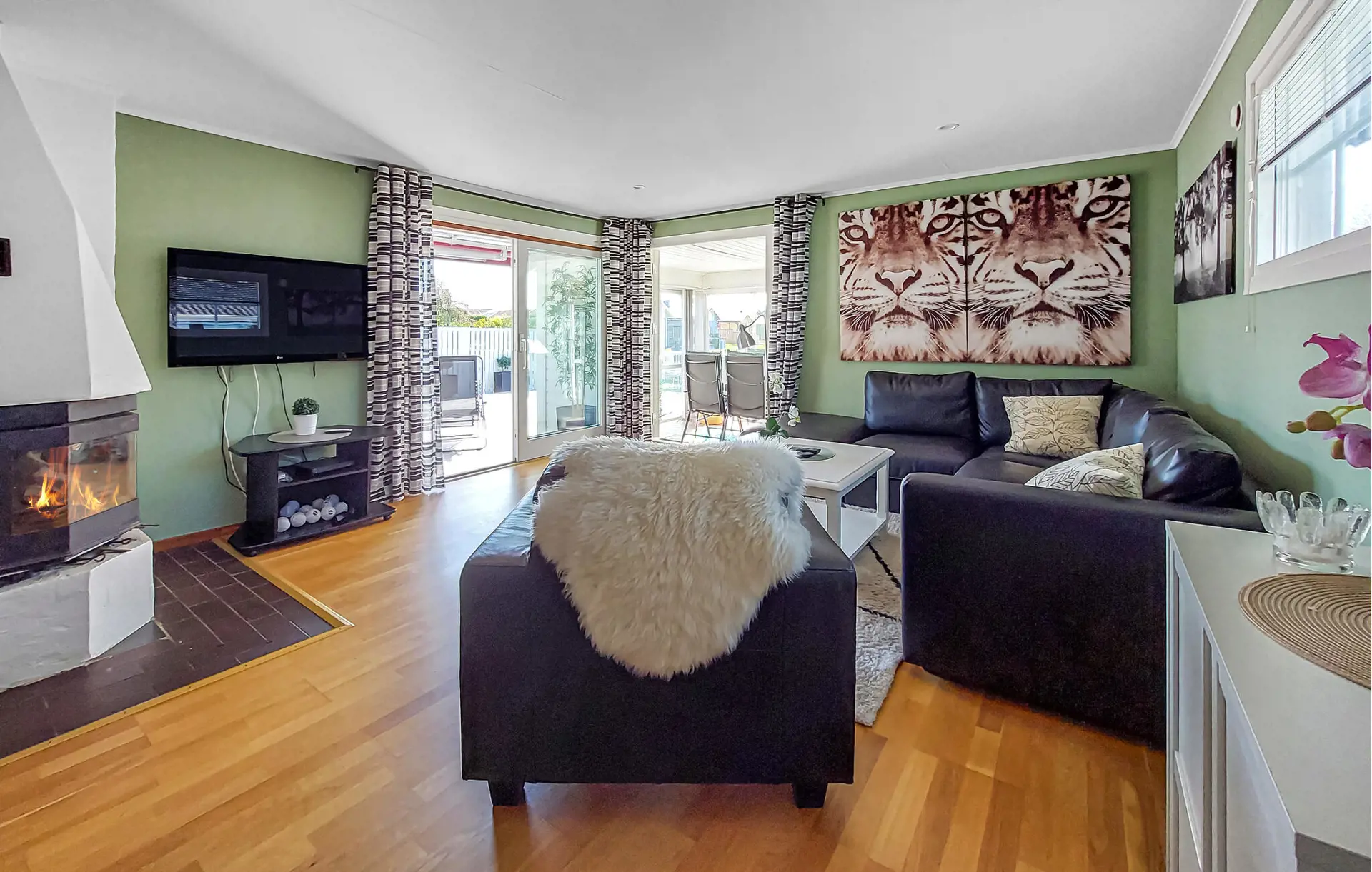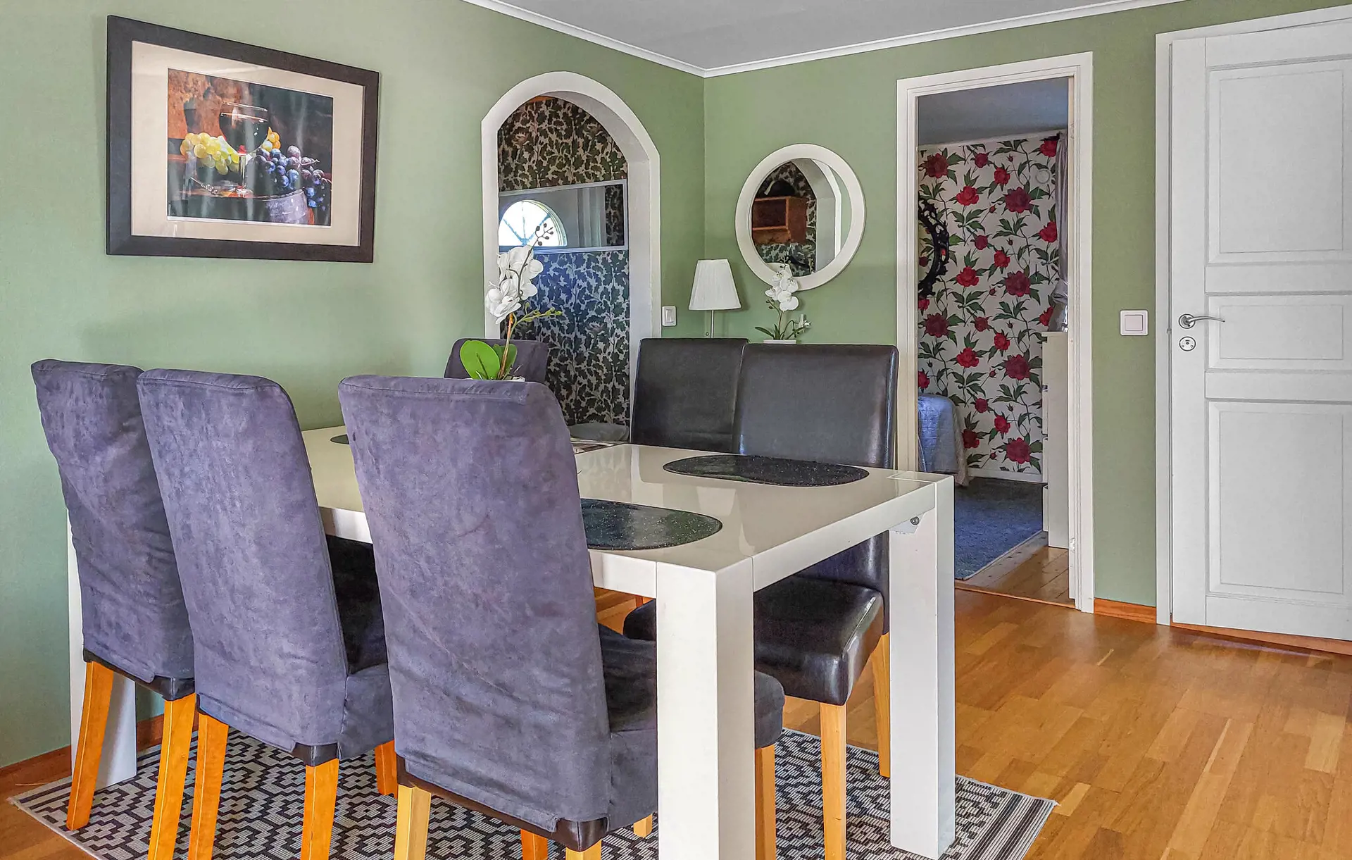 Dieses landschaftlich schön gelegene Ferienhaus verspricht Ihnen eine erholsame Auszeit vom Alltag. Plaudern Sie mit Ihren Lieben entspannt im lichtdurchfluteten Wohnraum, verbringen Sie einen lustigen Spieleabend oder bereiten Sie gemeinsam frische Mahlzeiten in der Küche zu. Die Veranda mit Glasfront lädt dazu ein, den Abend bei einem Glas Wein gemütlich ausklingen zu lassen.