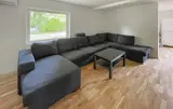 Dieses geräumige Ferienhaus bietet ideale Voraussetzungen für einen entspannten Aufenthalt mit der Familie oder Freunden. Sie wohnen in ruhiger Lage und haben eine gute Anbindung an die Sehenswürdigkeiten der Umgebung. Das Wohn- und Esszimmer mit moderner Eckcouch ist der ideale Ort zum Ausruhen und Spielen oder für gemeinsame Mahlzeiten. Die angrenzende Küche lädt zum gemeinsamen Kochen ein. Helle Holzböden und große Fenster sorgen für ein freundliches Ambiente. Nutzen Sie die praktische Raumaufteilung, um Ihren Urlaub ganz nach Ihren Vorstellungen zu gestalten.