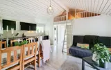 Aufruf an alle Naturliebhaber! Dieses einladende, schwarze Holzhaus ist der perfekte Urlaubsspot für herrliche Naturerlebnisse. Das offene Wohnkonzept fördert Kommunikation und Geselligkeit: Niemand muss alleine in der Küche stehen, während der Rest der Familienmitglieder im Wohnzimmer plaudern! Zünden Sie den fünfarmigen Kerzenleuchter an und decken Sie zusammen mit den Kindern einen schönen Tisch für das abendliche Familienessen. Während Sie das Essen fertig machen, können die Kinder auf dem Sofa Uno spielen oder im schönen Garten herumtoben. An warmen Tagen können Sie alle Ihre Mahlzeiten auf die große Terrasse verlegen. In der Nähe finden Sie den Autostrand Ringsegården, wo sich auch Kitesurfer austoben können. Es gibt ebenso einen schönen Radweg zum Zentrum von Falkenberg, und der schöne Skrea Mini Grand Canyon erreichen Sie zu Fuß.