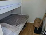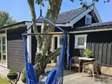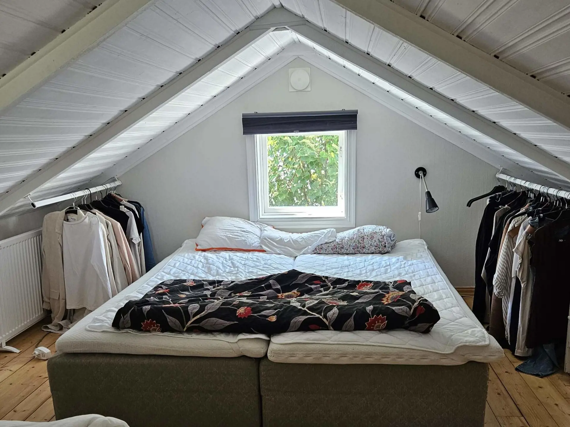 Im Erdgeschoss des Hauses befinden sich eine offene Küche und ein Wohnzimmer mit modernem Fernseher, Chromecast und WLAN. Ein kleineres Schlafzimmer mit separatem Eingang von außen verfügt über ein Familien-Etagenbett. Das Badezimmer ist mit einer Dusche ausgestattet. Im Obergeschoss befindet sich ein geräumiger Schlafboden mit zwei Einzelbetten. Ein herrlicher verglaster Wintergarten bietet sowohl einen Esstisch als auch eine Tagesliege. Direkt daneben gibt es eine Terrasse mit Gartenmöbeln und Grill. Das Grundstück ist klein, aber von viel Grün umgeben. Eine Gemeinschaftswaschküche im Gebiet steht zur Verfügung. Der Eigentümer verleiht außerdem kostenlos zwei Fahrräder.