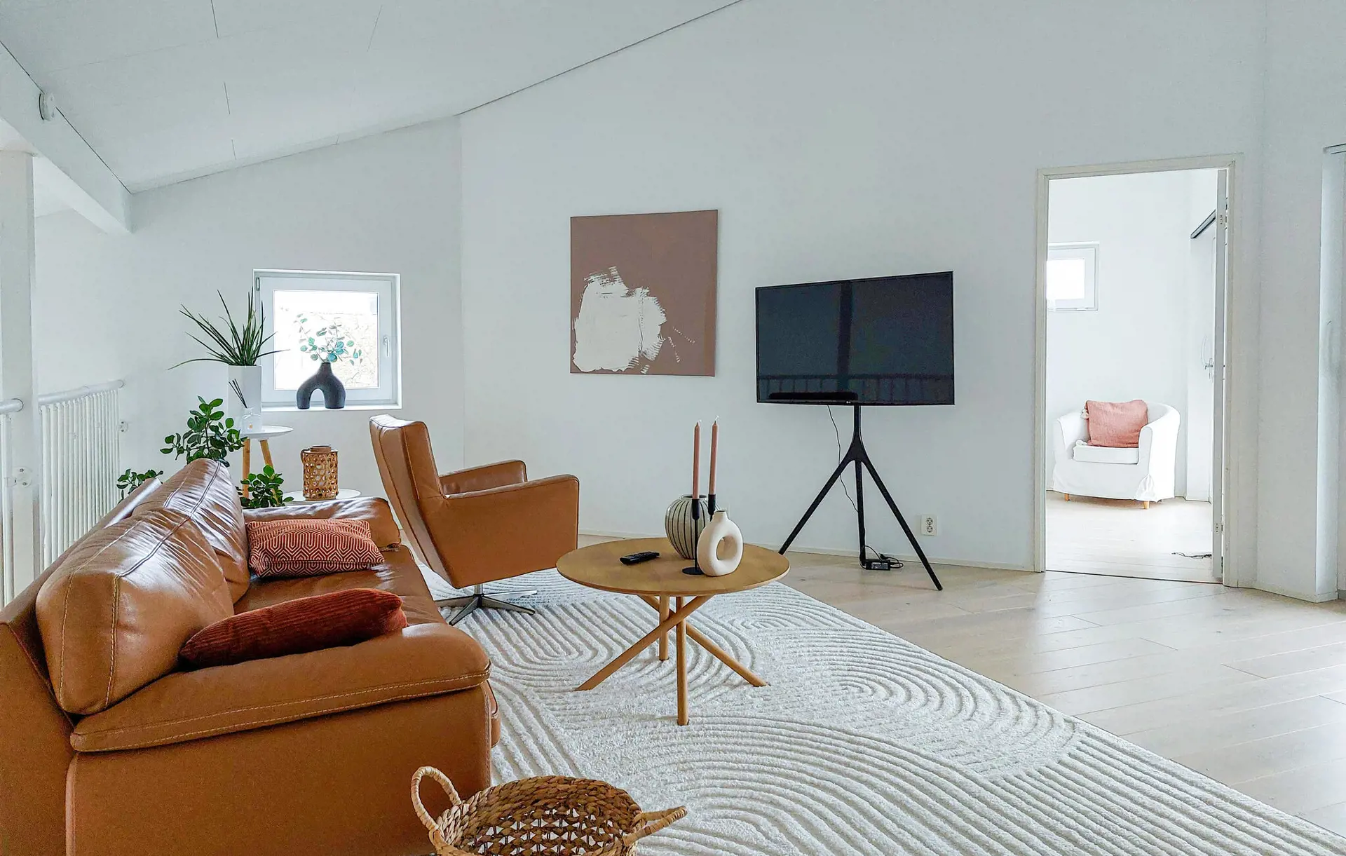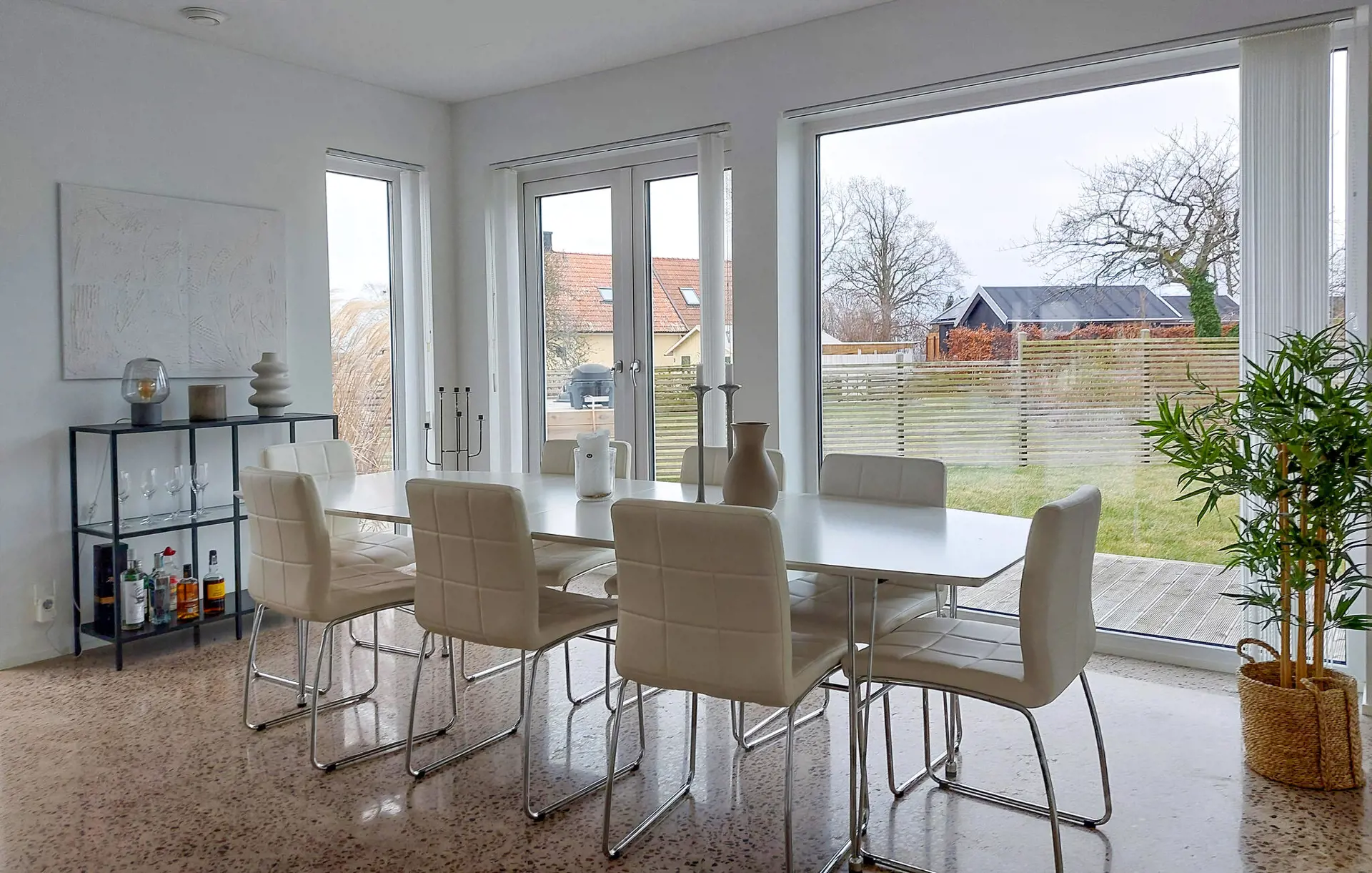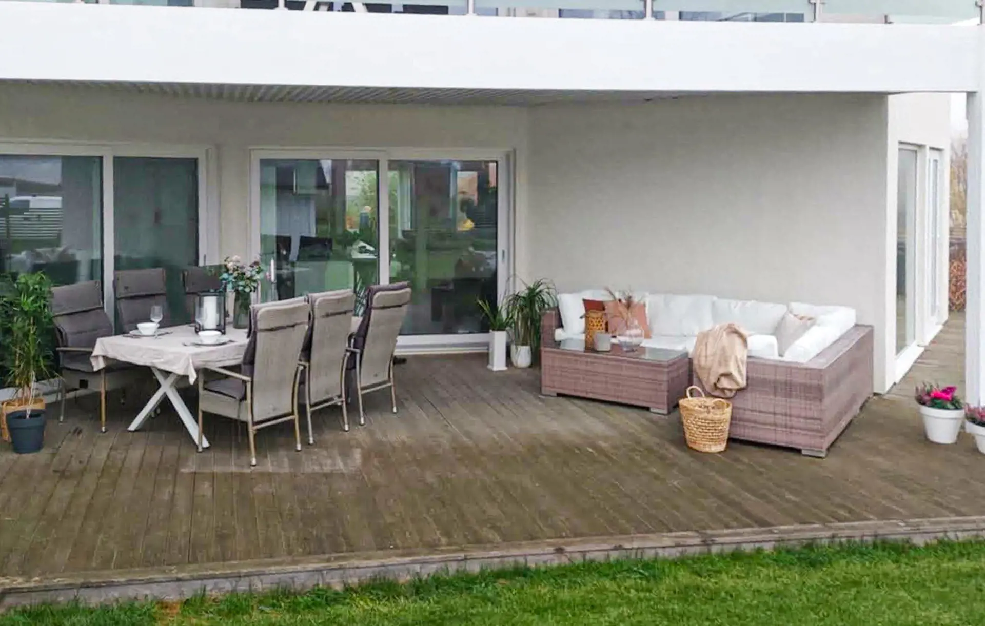 Nur wenige Gehminuten vom Strand entfernt wird Sie dieses komfortable Ferienhaus mit einer hochwertigen und geschmackvollen Innenausstattung begeistern. Große Fensterfronten fluten den behaglichen Wohnbereich mit reichlich natürlichem Licht. Freuen Sie sich auf harmonische Mahlzeiten am einladenden Esstisch, planen Sie gemeinsam Ihre Unternehmungen und finden Sie bei gemütlichen Spieleabenden oder einem guten Film zusammen.