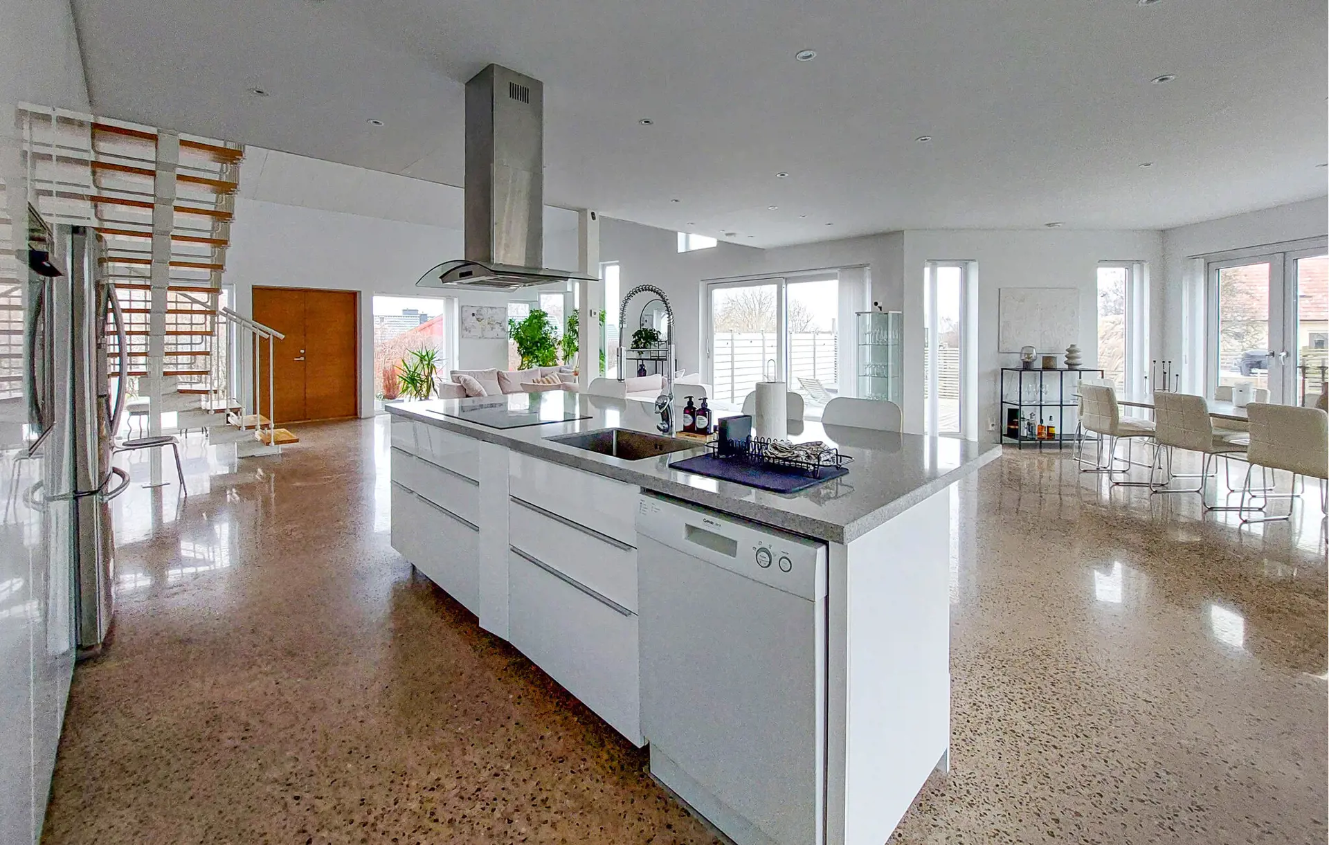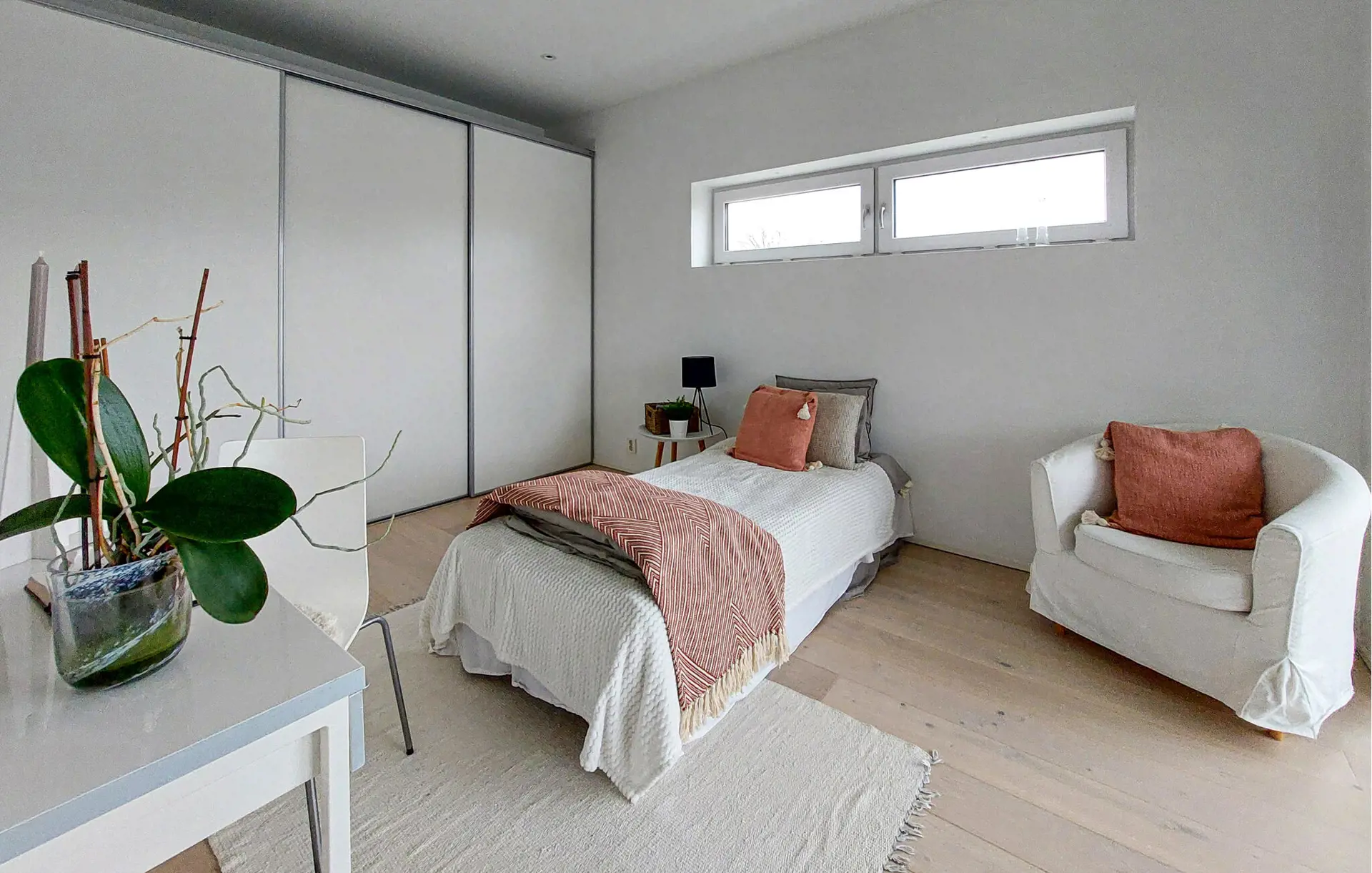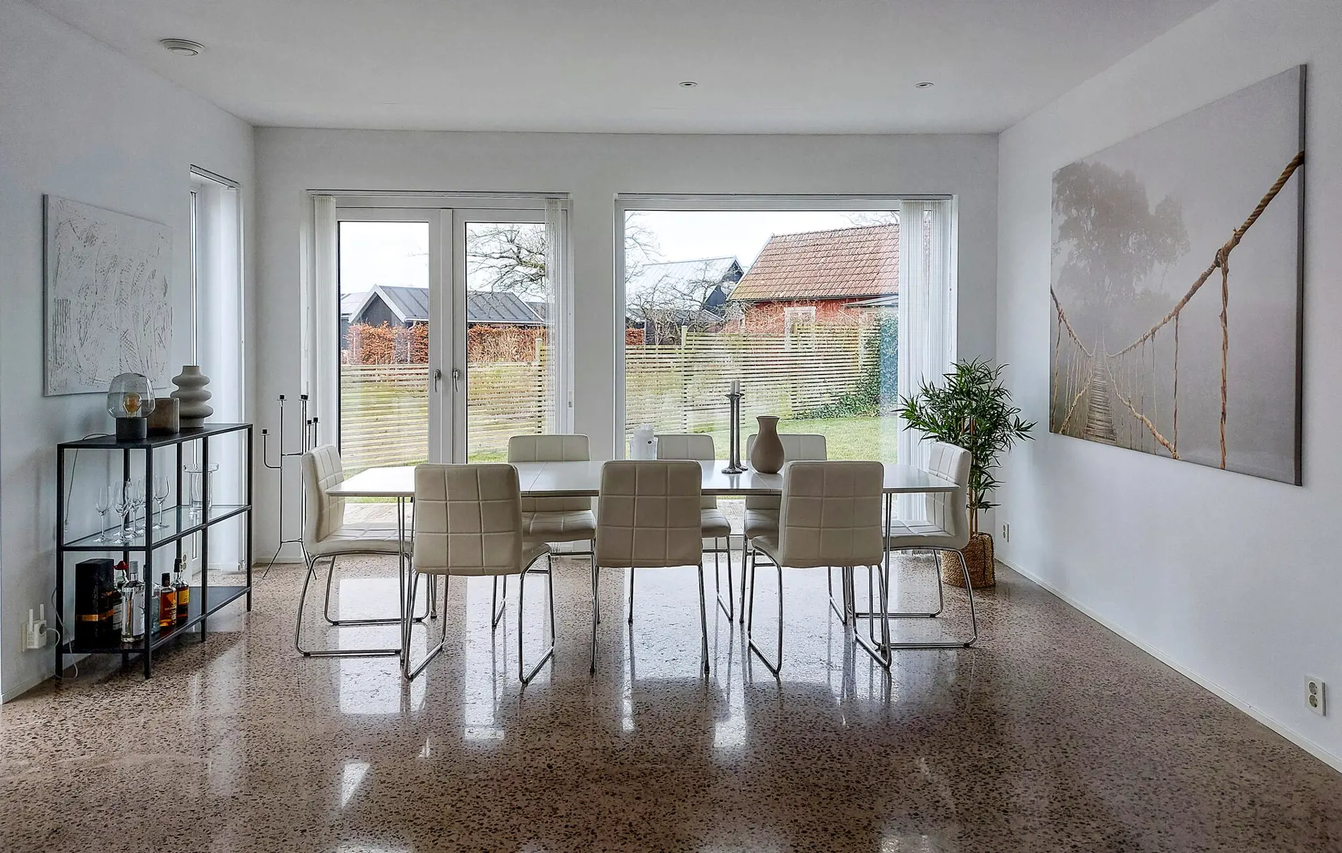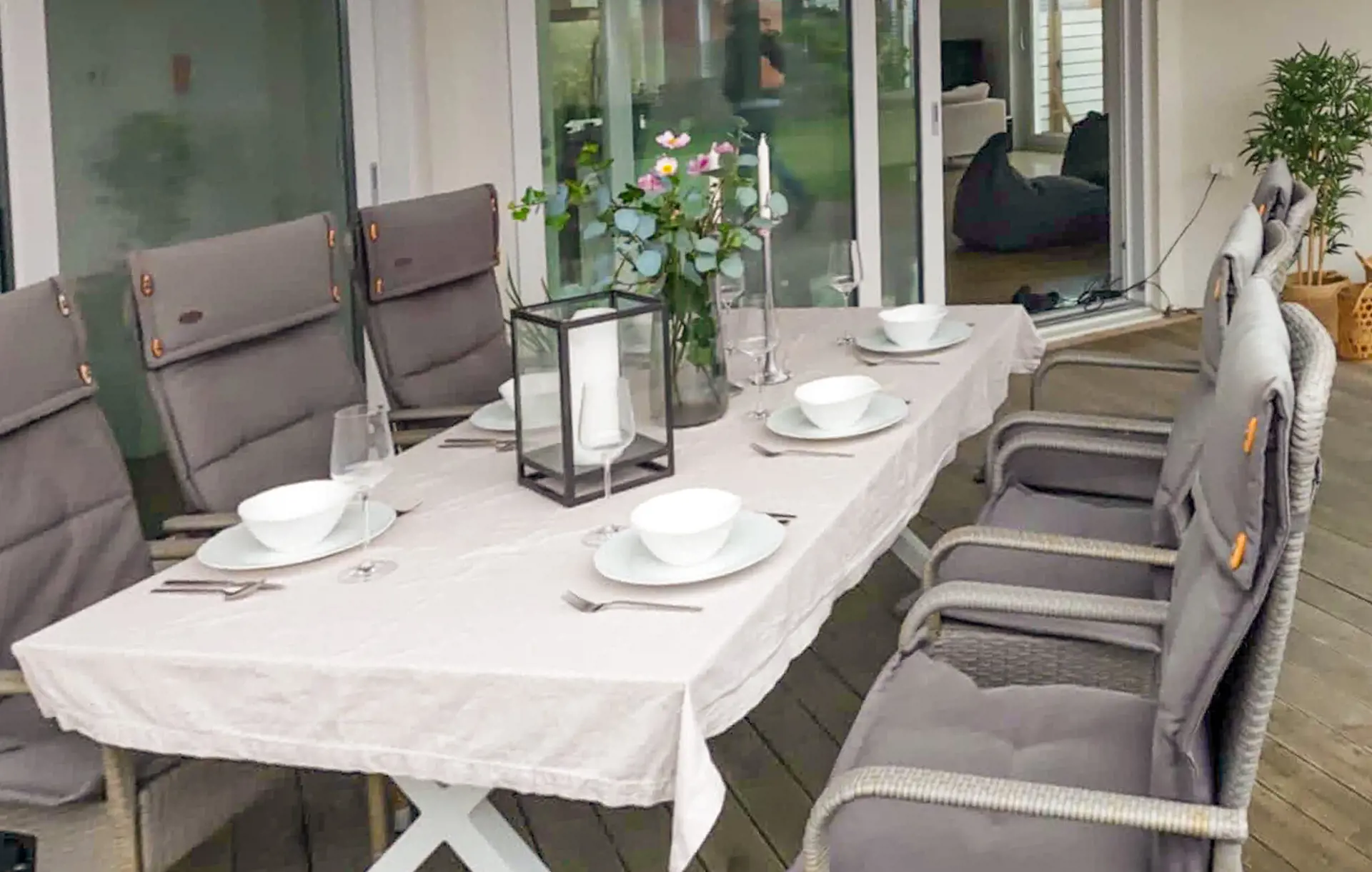 Nur wenige Gehminuten vom Strand entfernt wird Sie dieses komfortable Ferienhaus mit einer hochwertigen und geschmackvollen Innenausstattung begeistern. Große Fensterfronten fluten den behaglichen Wohnbereich mit reichlich natürlichem Licht. Freuen Sie sich auf harmonische Mahlzeiten am einladenden Esstisch, planen Sie gemeinsam Ihre Unternehmungen und finden Sie bei gemütlichen Spieleabenden oder einem guten Film zusammen.