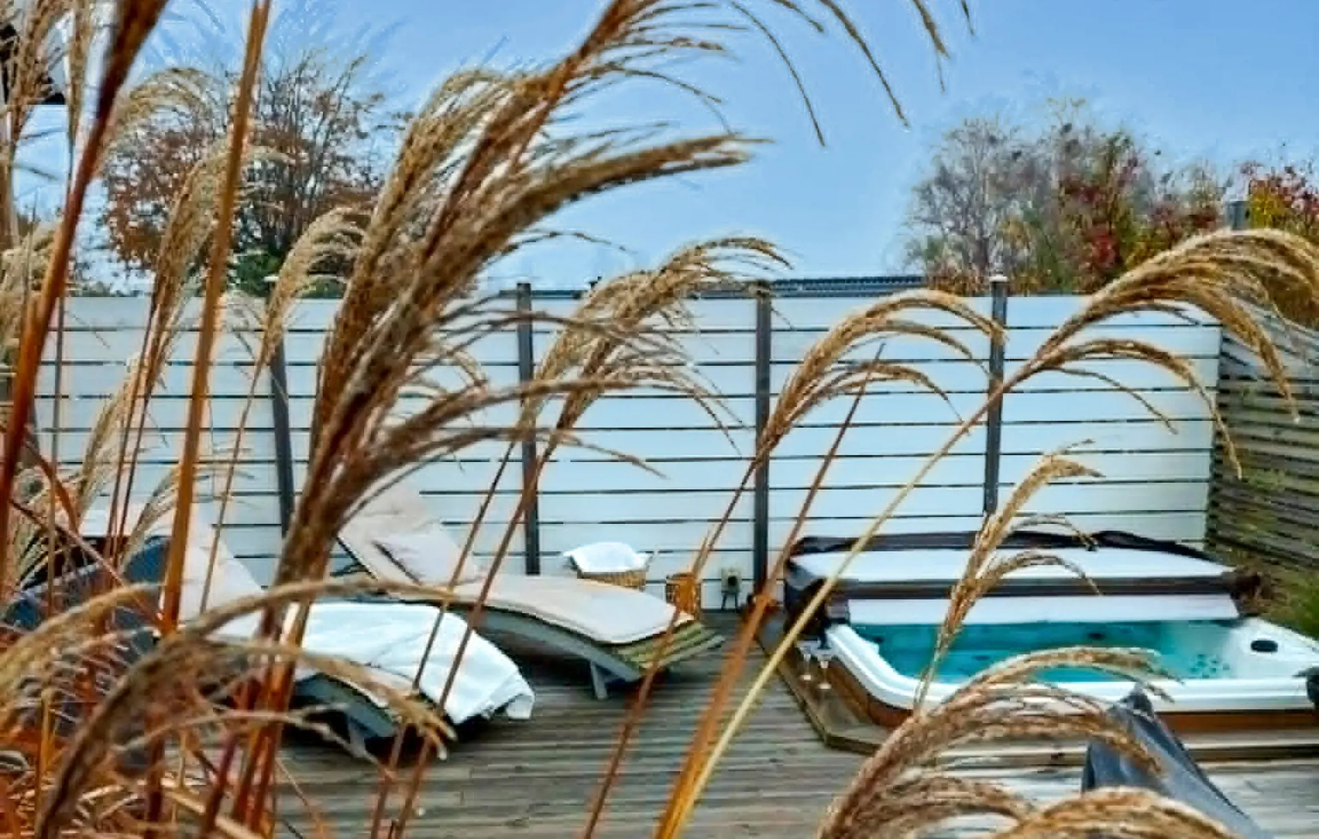 An sonnigen Tagen können Sie sich Ihr Frühstück auf der Terrasse servieren, während sich die Kinder im Garten austoben. Gönnen Sie sich nach einem erfrischenden Bad im Meer wohltuende Momente im Whirlpool und zaubern Sie köstliche Gerichte auf dem Grill.