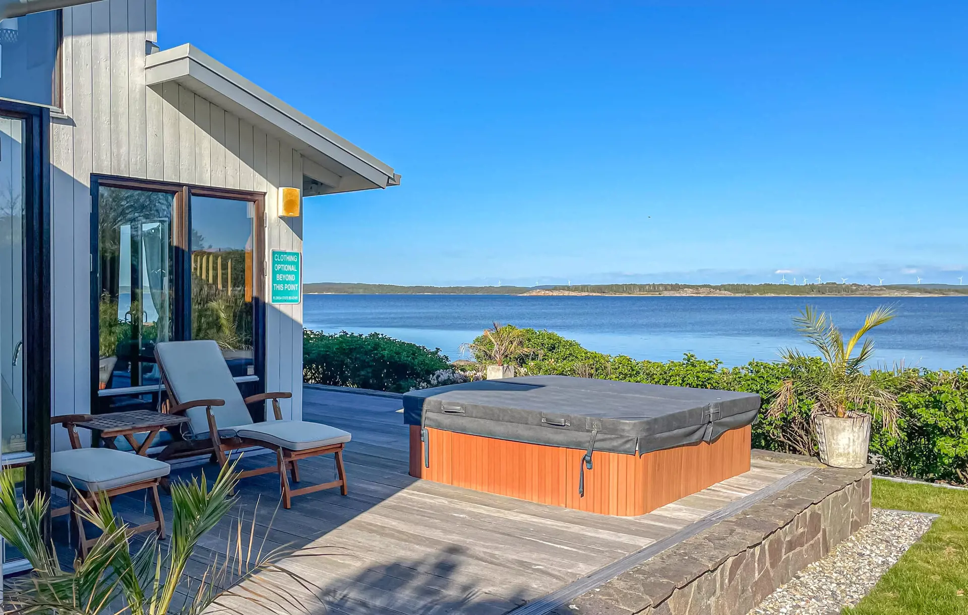 Genießen Sie in diesem bezaubernden Ferienhaus den wunderschönen Meerblick vom Whirlpool aus.