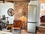 Es ist gemütlich, und Sie werden von einer warmen Atmosphäre und einem üppigen Garten begrüßt. Der offene Küchenbereich verfügt über einen Esstisch, einen Herd mit Backofen, einen Kühl- und Gefrierschrank sowie einen Geschirrspüler.