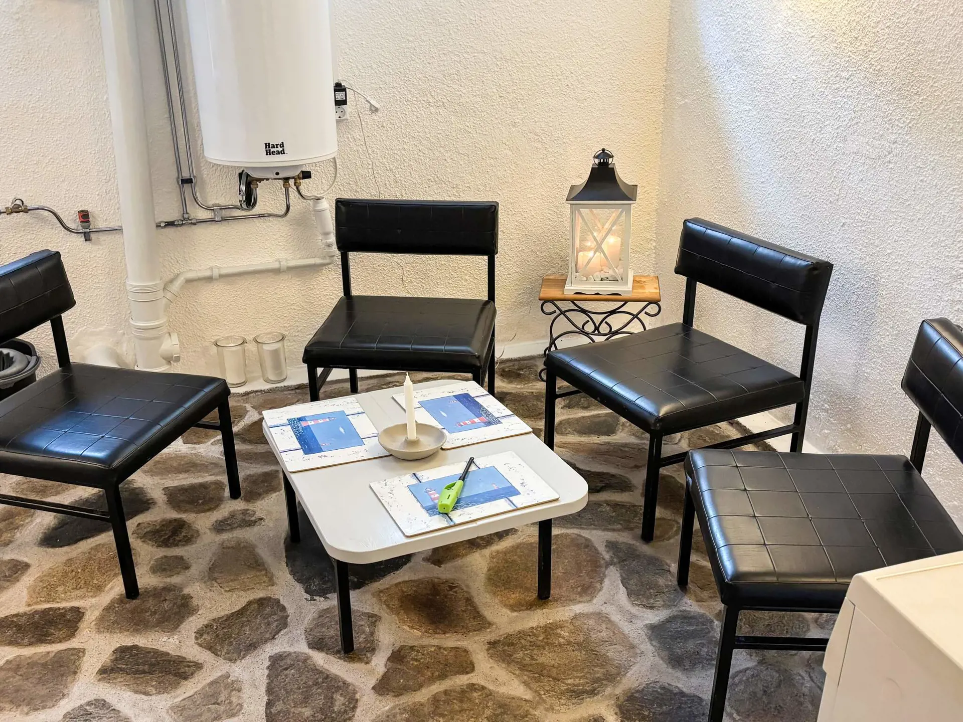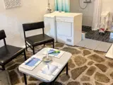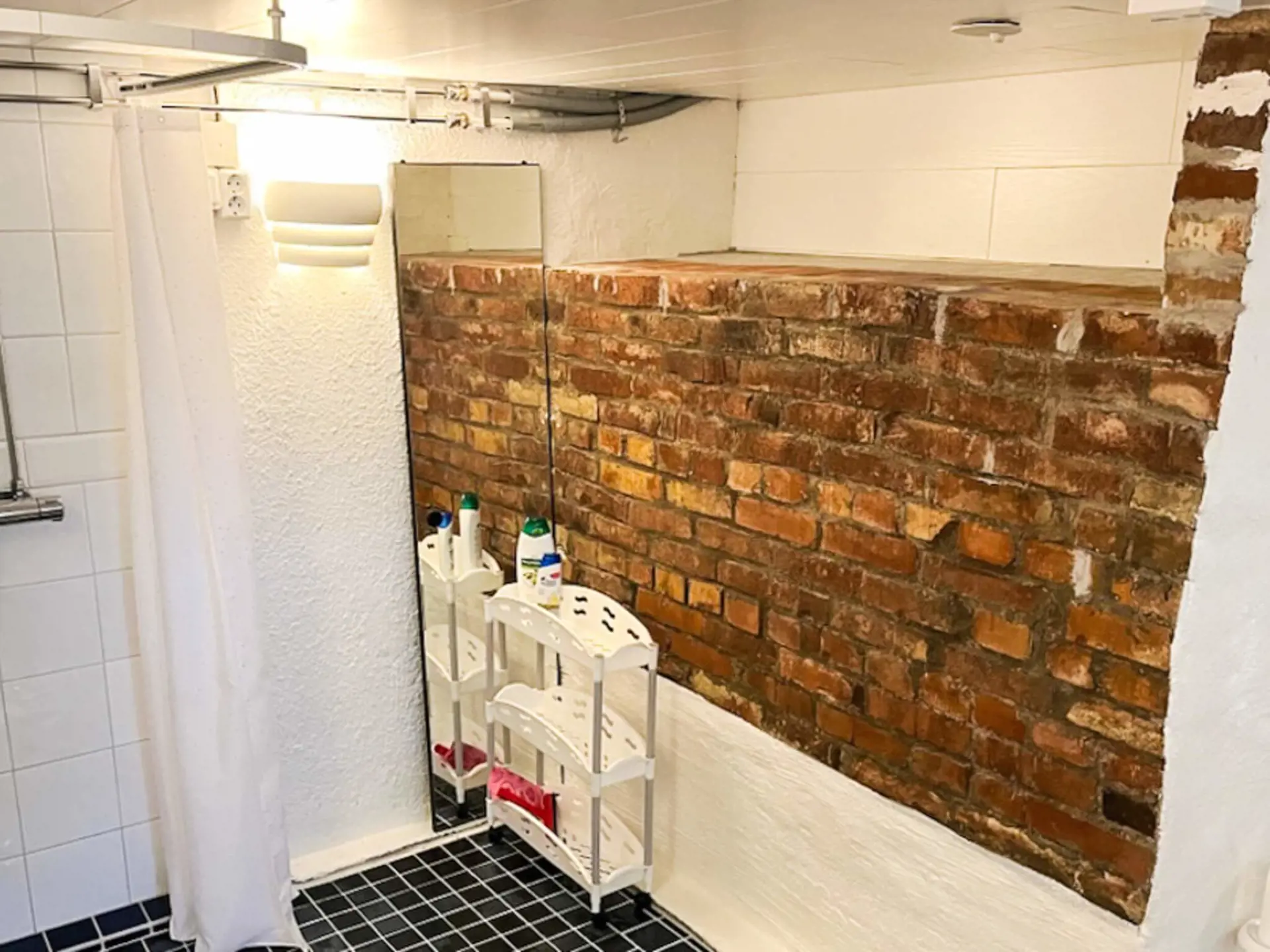 Das Haus verfügt über zwei Toiletten mit Waschbecken. Im Erdgeschoss befindet sich ein kühles Wohnzimmer mit einer geräumigen Dusche mit Fußbodenheizung. Im Untergeschoss finden Sie außerdem eine Waschmaschine und einen Trockner.