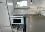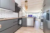 Im kleinen Gästehaus stehen auf 15 m² Schlafplätze für maximal 3 Personen zur Verfügung. Man betritt direkt den kombinierten Wohn-, Küchen- und Schlafbereich. Die Küche ist ausgestattet mit Herd, Backofen, Geschirrspüler, Kühl- und Gefrierschrank, Mikrowelle, Kaffeemaschine und Wasserkocher. Ein TV ist ebenfalls vorhanden.