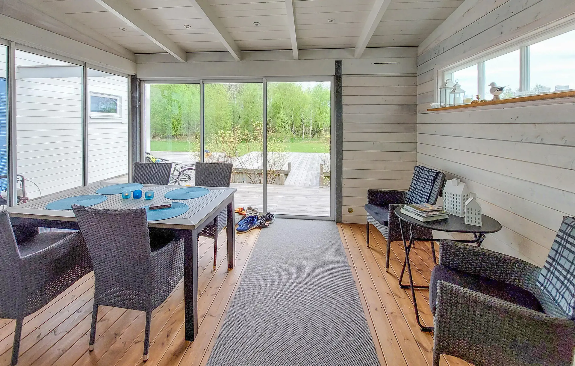 Dieses helle und gemütliche Ferienhaus verwöhnt Sie mit geräumigen und geschmackvoll eingerichteten Räumlichkeiten, an denen sich Ihre ganze Familie erfreuen wird. Zaubern Sie Ihre Lieblingsgerichte in der offenen Küche, speisen Sie im verglasten Außenbereich mit Blick ins Grüne und freuen Sie sich auf harmonische Spieleabende oder entspannte Lesestunden auf der großzügigen Sofalandschaft.