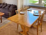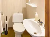 Im Erdgeschoss des Hauses befindet sich eine gut ausgestattete Küche mit angrenzendem Essbereich. Hier gibt es außerdem ein Schlafzimmer mit einem Etagenbett in Form eines Familienbettes mit breiterer, unterer Koje, dazu einen kleineren Raum, der als Arbeitszimmer fungiert. Das Wohnzimmer verfügt über bequeme Sitzgelegenheiten und einen Fernseher sowie über einen schönen Esstisch. Das Badezimmer bietet eine Badewanne mit Handdusche. Im Obergeschoss befindet sich der Schlafbereich; ein größeres Zimmer mit Doppelbett und Sofa, zweites Zimmer mit zwei Einzelbetten. Hier gibt es auch eine Toilette. Im Keller des Hauses befindet sich die praktische Waschküche. Kein freies WLAN vorhanden.