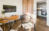 Nur wenige Schritte vom Strand entfernt heißt Sie dieses charmante Doppelhaus willkommen und bietet Ihnen ein behagliches Refugium, während Sie in vertrauter Zweisamkeit Erholung am Meer mit reizvollen Ausflügen kombinieren. Verwöhnen Sie sich gegenseitig mit leckeren Gerichten und genießen Sie das helle und freundliche Ambiente bei entspannten Mahlzeiten. Nach einem langen Tag an der frischen Seeluft können Sie es sich auf dem Sofa bequem machen und Ihre Lieblingsserie streamen.