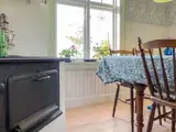 Die Küche des Hauses, mit einem schönen Essbereich, ist eine Augenweide! Zur umfassenden Ausstattung gehören Geschirrspüler, kombinierter Backofen/Mikrowelle, Induktionskochfeld und gusseiserner, alter Holzherd. Das Wohnzimmer verfügt über eine gemütliche Sitzgruppe mit Sessel, wo Sie vor dem Feuer im Kachelofen oder vor dem Smart-TV mit zugehörigem Chromecast (zum Streamen eigener TV-Anbieter) entspannen können. Freies LAN ist verfügbar (10 Mbit).