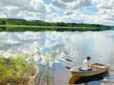 Hier können Sie die Ruhe und die Nähe zum See so richtig genießen. Sie haben eine Terrasse oben am Haus mit Gartenmöbeln, Liegestühlen und einem eingebauten Grill, auf der Sie sonnige Tage verbringen können. Eine Treppe führt Sie hinunter auf die wunderschöne Holzterrasse direkt am Seeufer. Hier können Sie ein erfrischendes Bad nehmen oder mit dem zur Verfügung stehenden Kanu einen Ausflug unternehmen (bitte eigene Schwimmwesten mitbringen!).