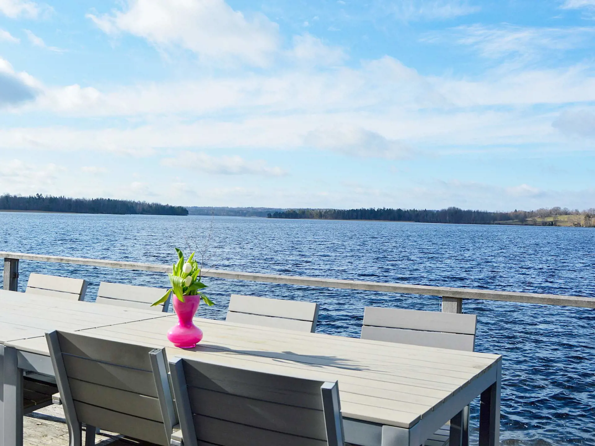 Auf dem großzügigen Balkon gibt es einen großen Tisch für die ganze Gesellschaft, an dem Sie schöne Sommertage verbringen können. Im Mietpreis ist die Nutzung eines Ruderbootes zwischen 1.5. und 30.10. enthalten. Schwimmwesten können gemietet werden.