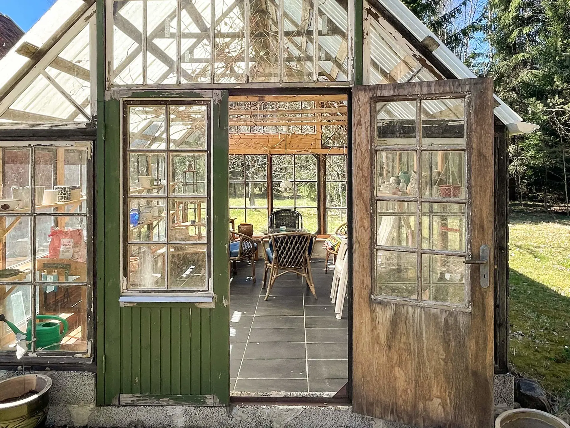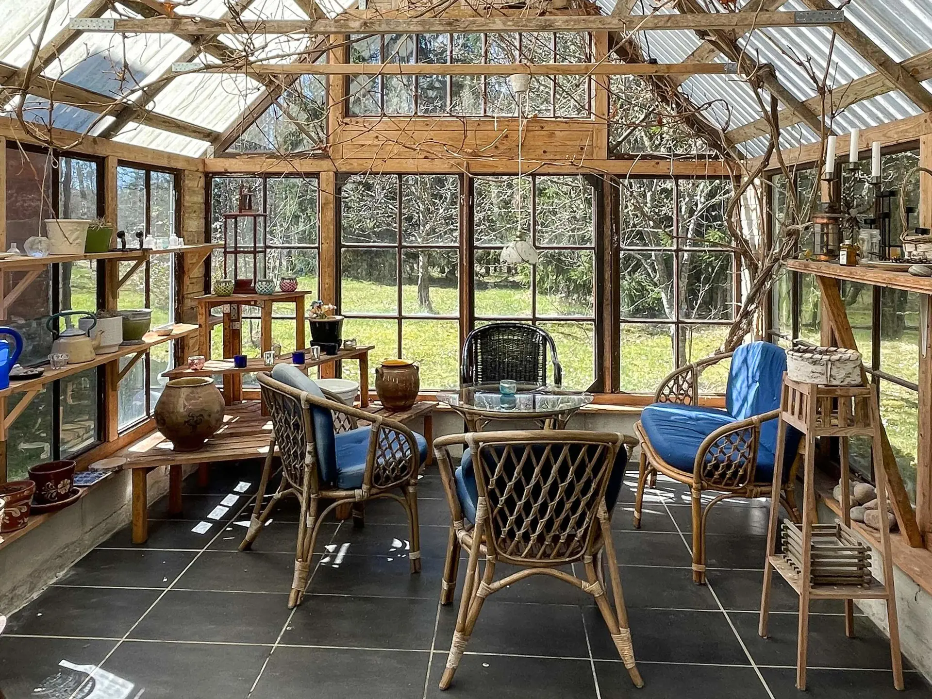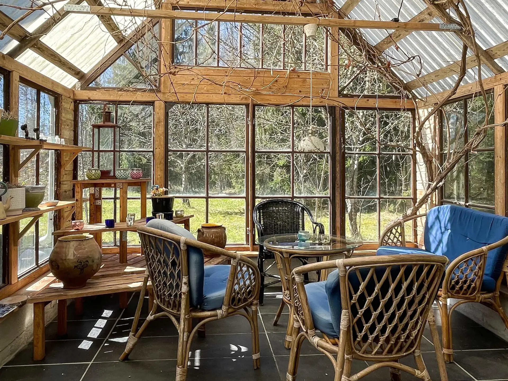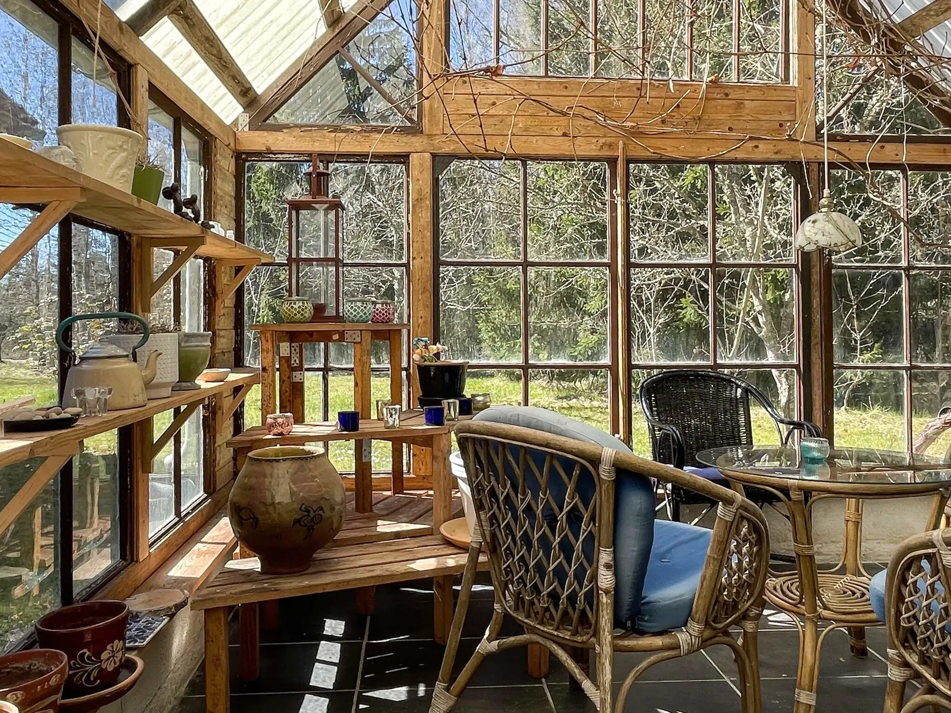 Zur Hütte gehört außerdem eine wunderschöne Orangerie/ein Gewächshaus – ein herrlicher Ort zum Entspannen und Genießen.
