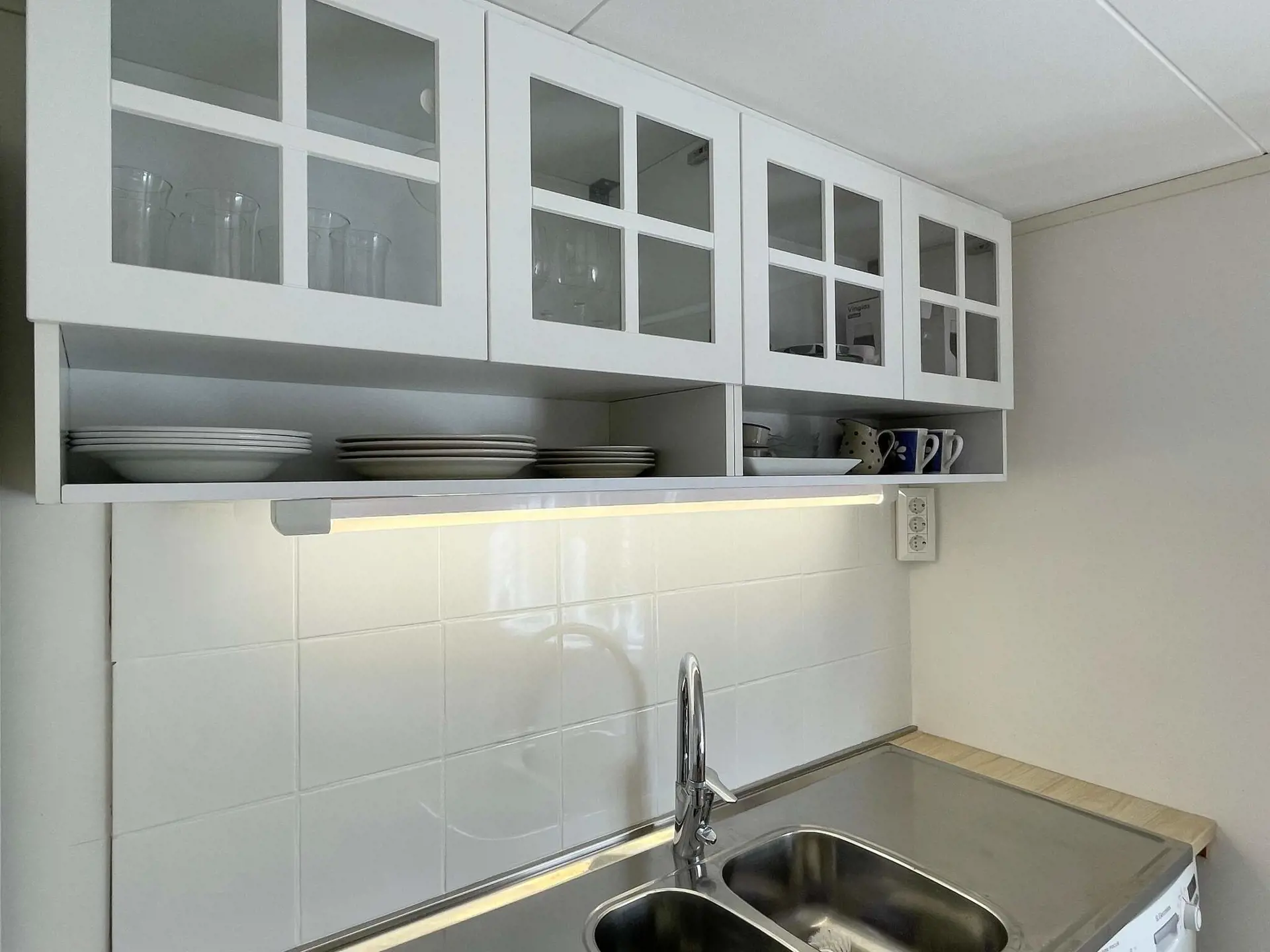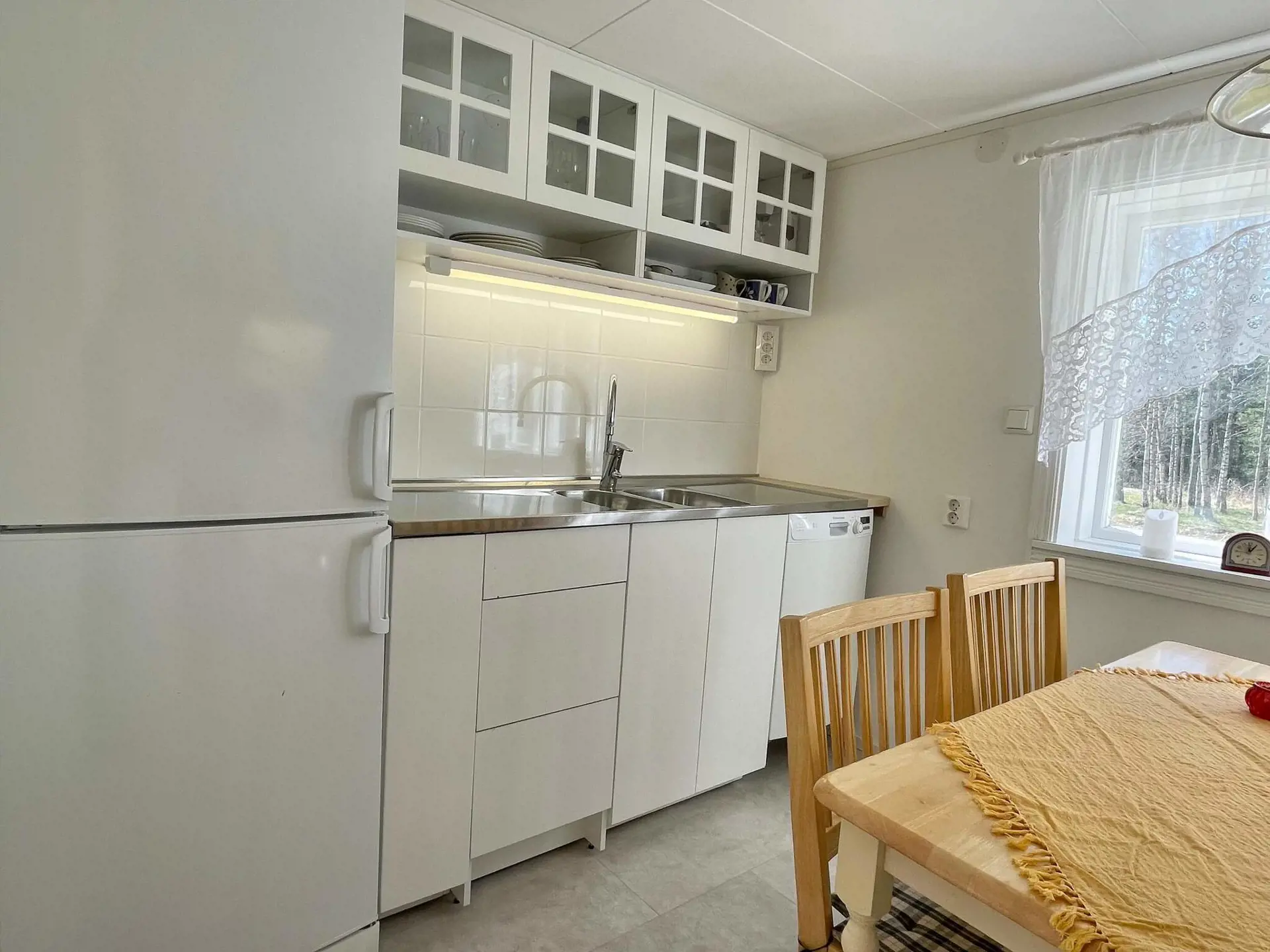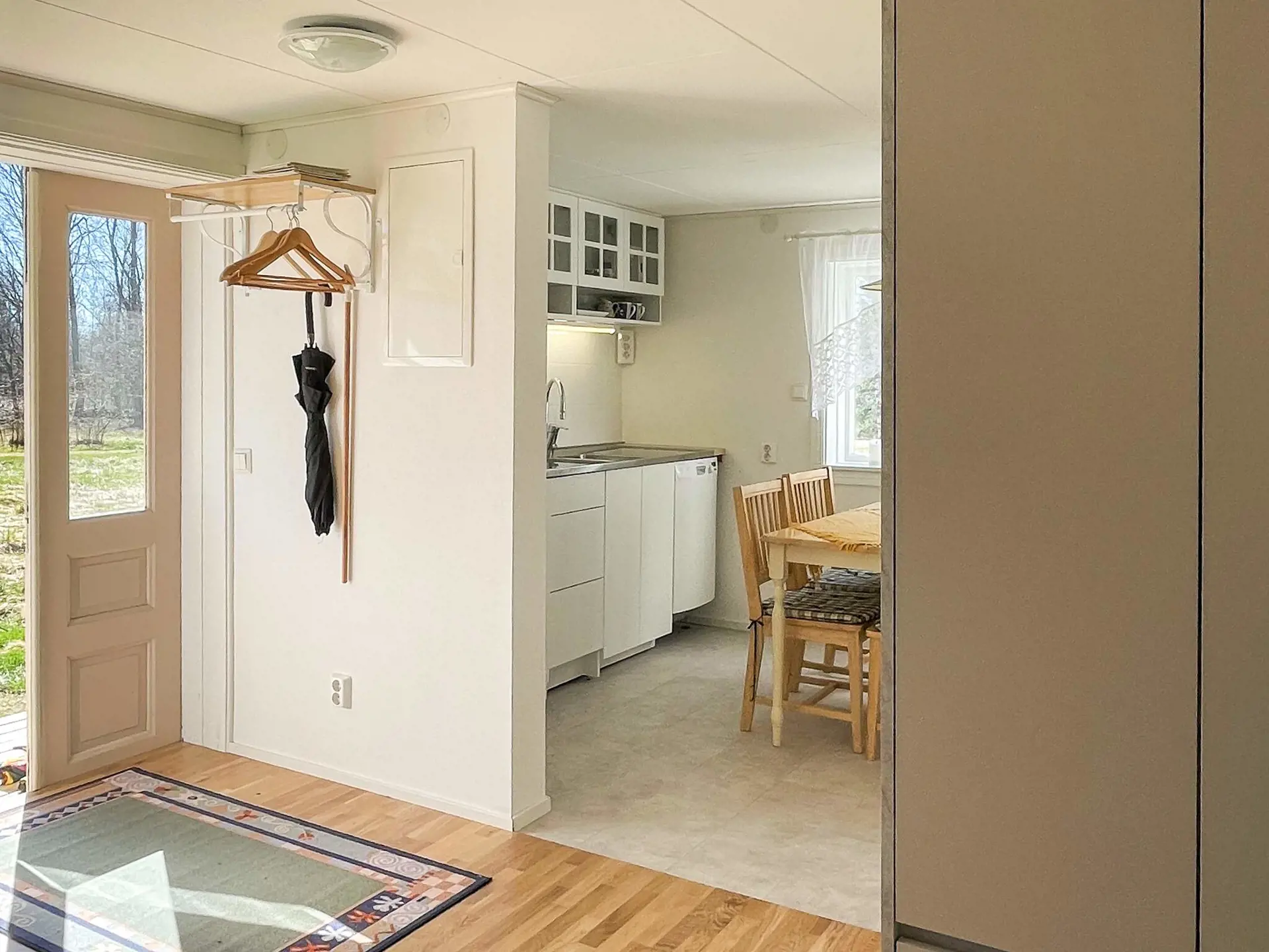 Das 30 m2 kleine Ferienhäuschen verfügt über einen offenen Wohnbereich mit einer neuen, stilvollen Küche, die mit allem Nötigen ausgestattet ist, und einem Essbereich.
