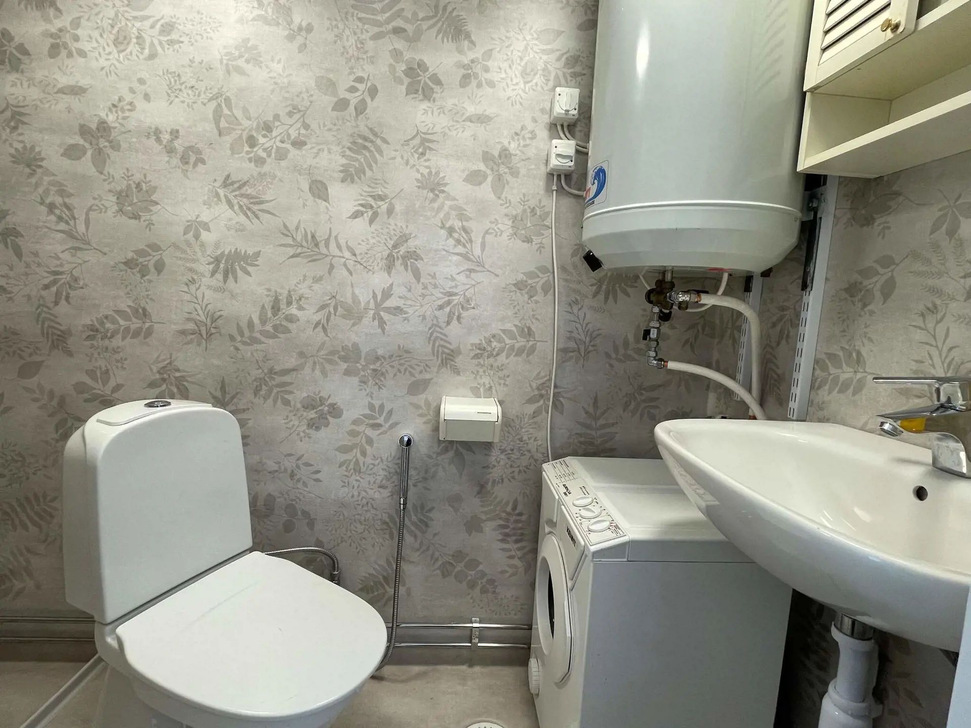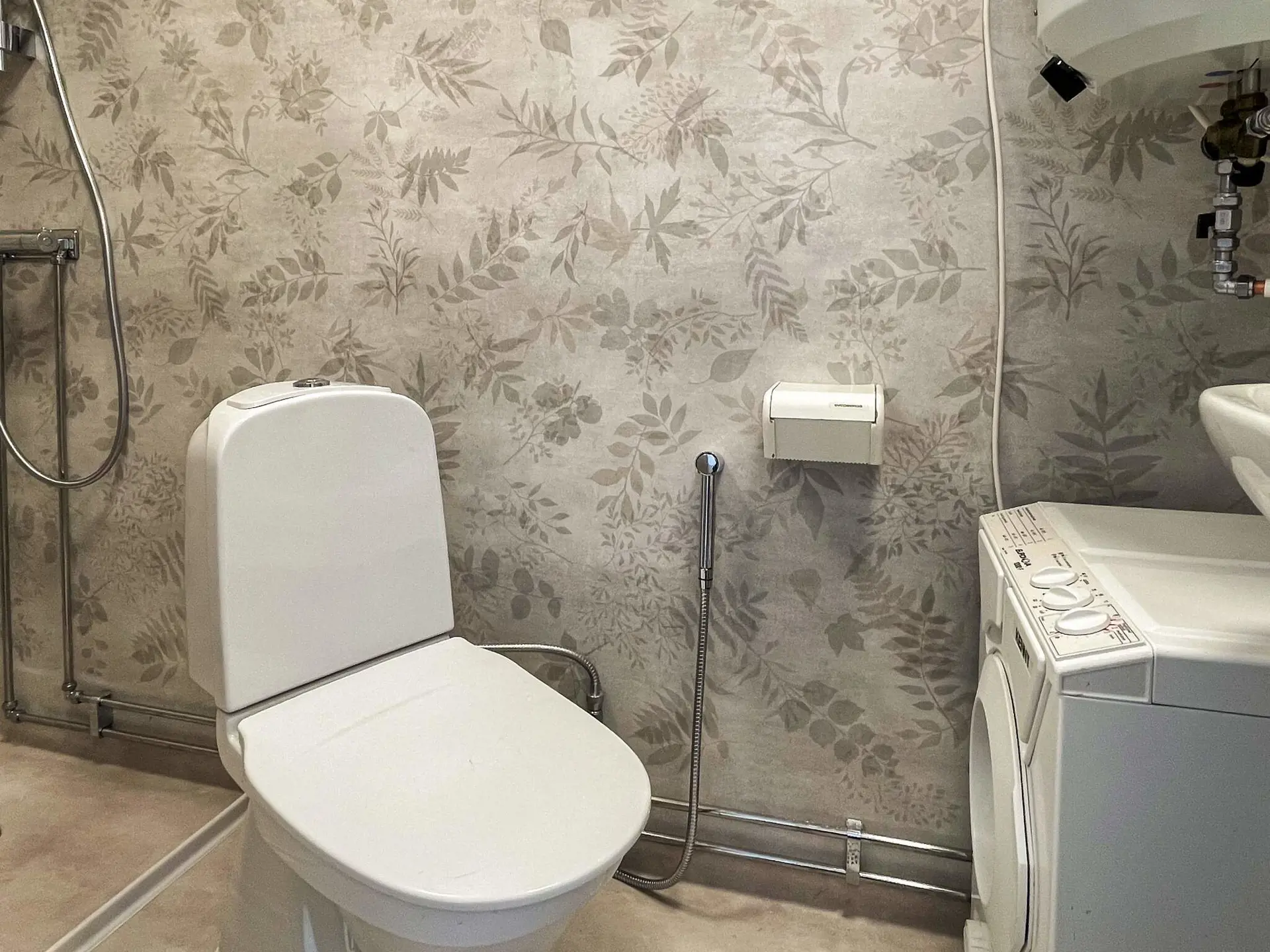 Das Badezimmer ist modern ausgestattet mit Dusche und Waschmaschine.